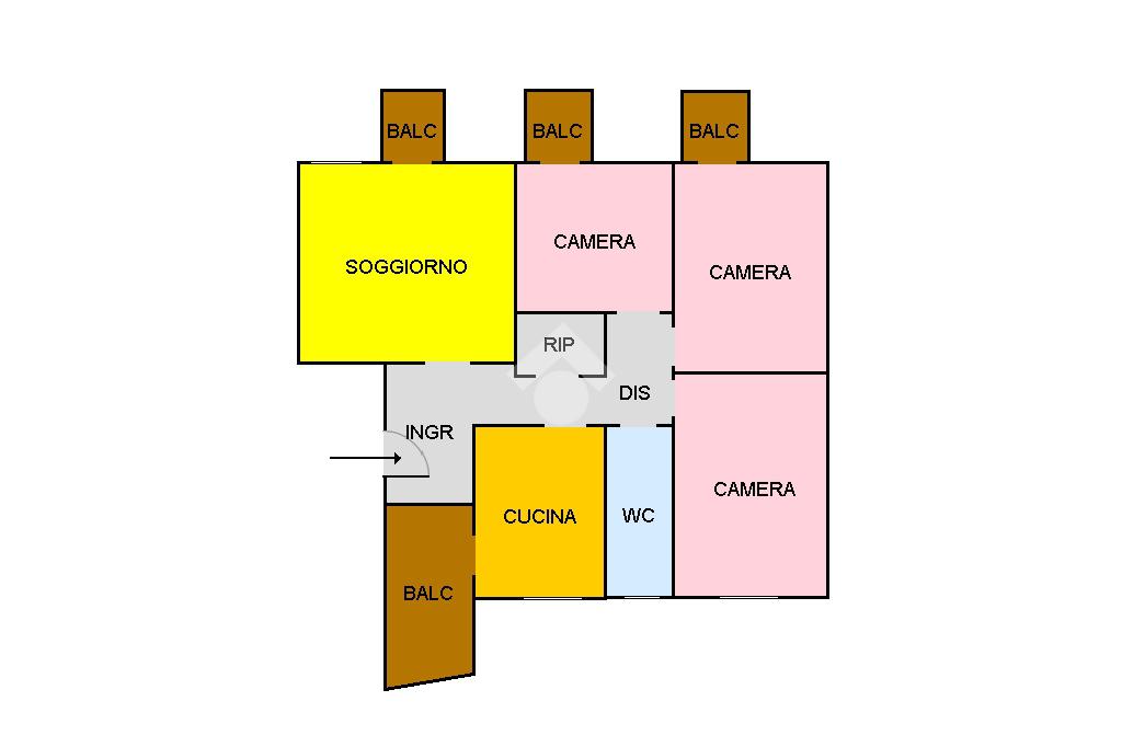 Nel dettaglio, scendendo degli scalini si giunge al portone del condominio, dentro il quale è presente un ascensore che, arrivato al quarto piano, conduce all'immobile in questione.
