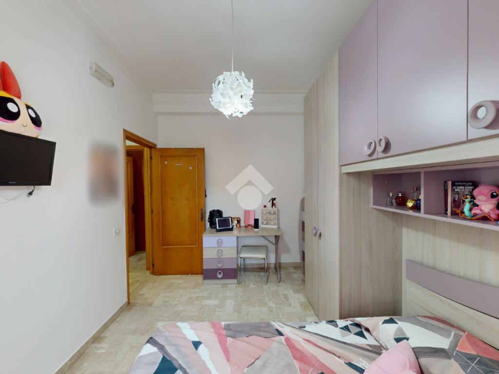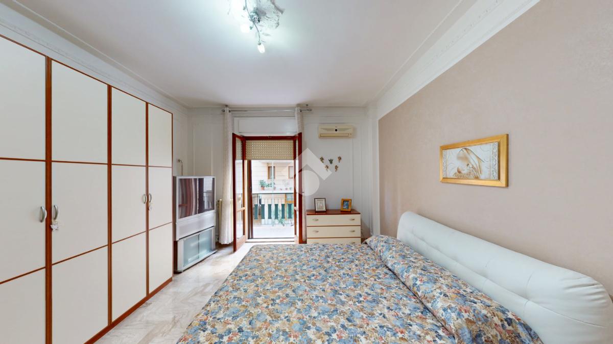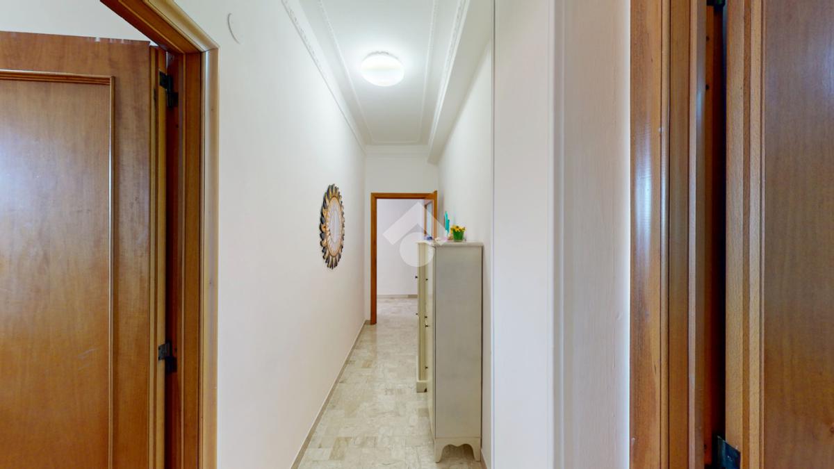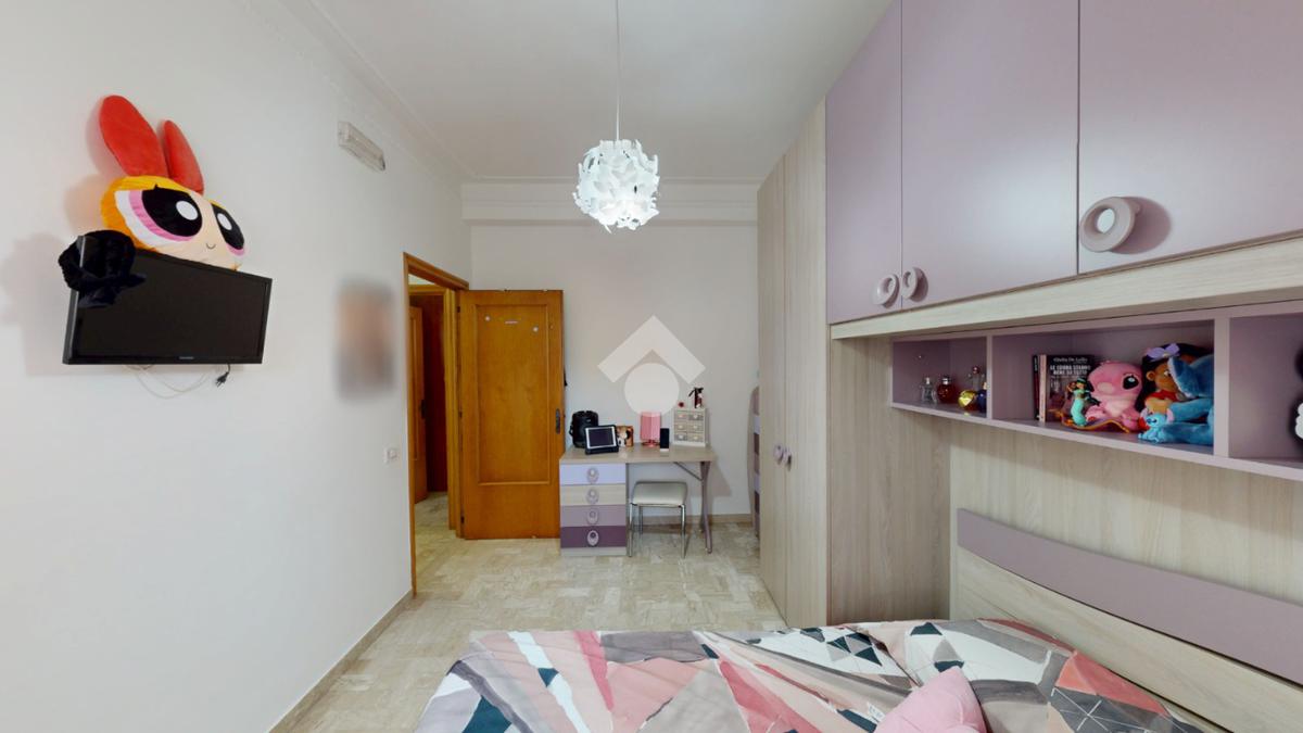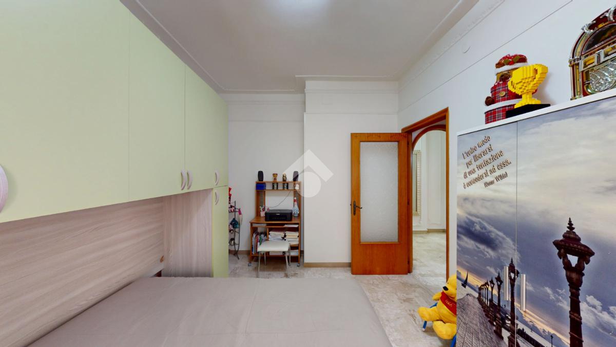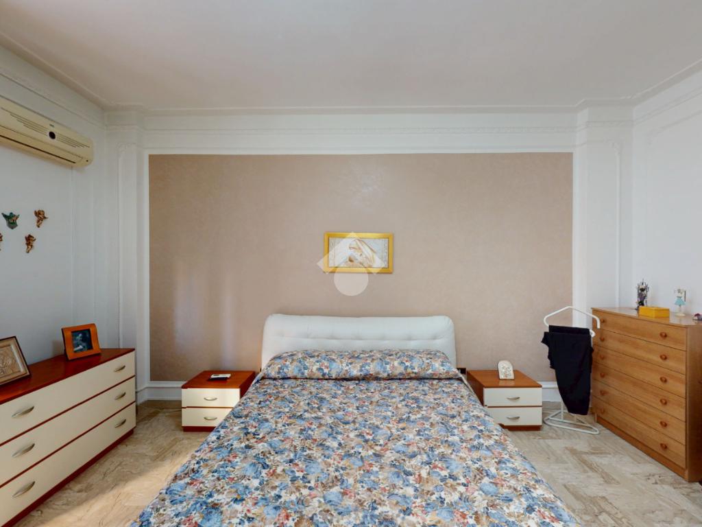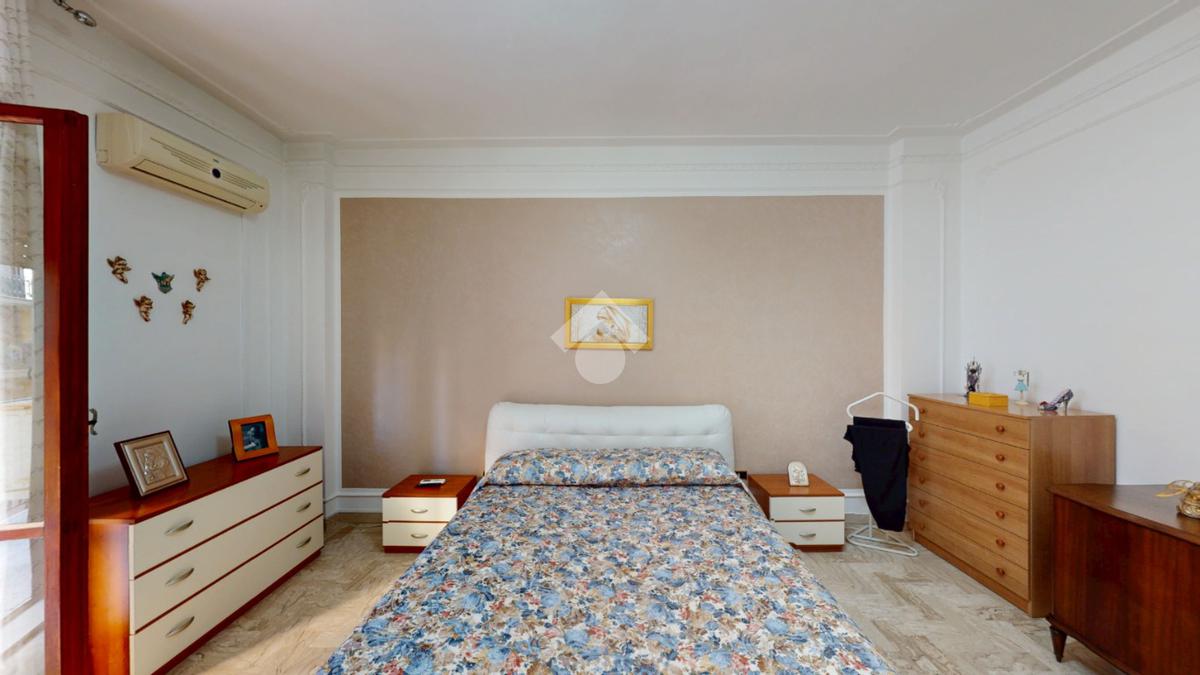 Un disimpegno collega la zona notte, subito dopo essere passati dal soggiorno: si tratta di un luminoso ambiente dalle dimensioni di 32 mq, luminoso grazie all'ampia finestra presente oltre che all'accesso al balcone il quale affaccia su Via Bastioni Carlo V.