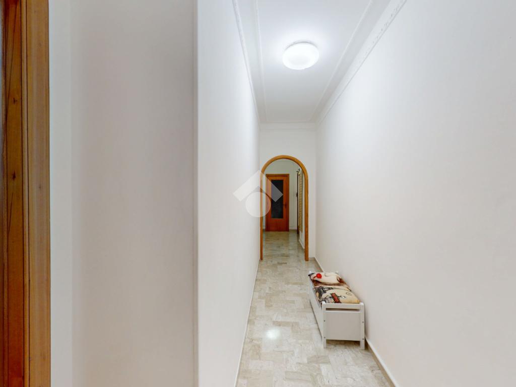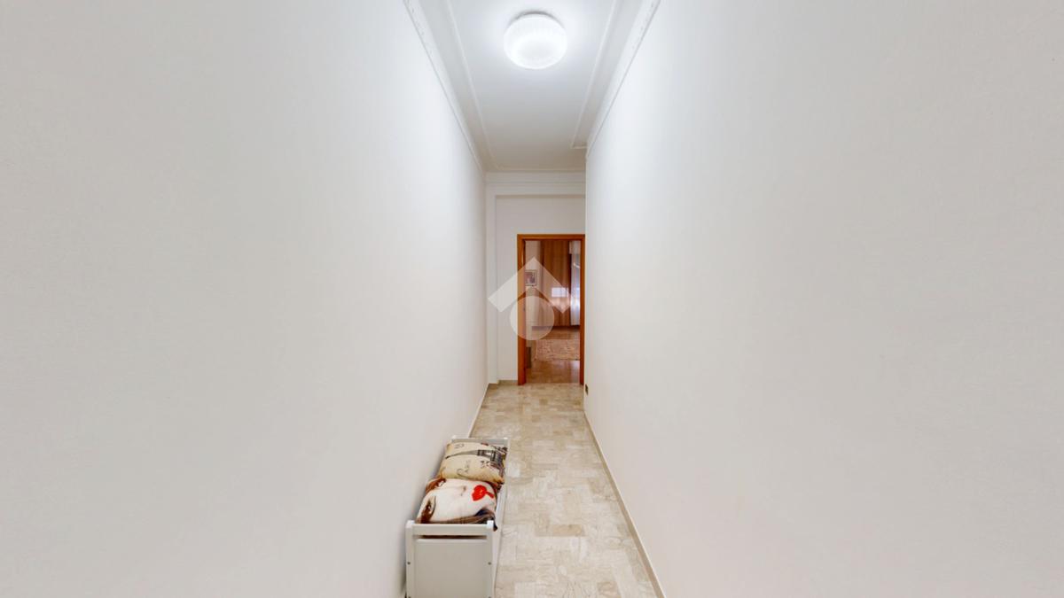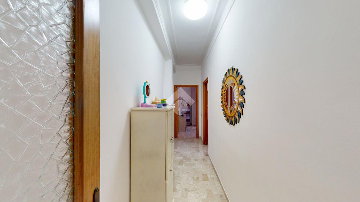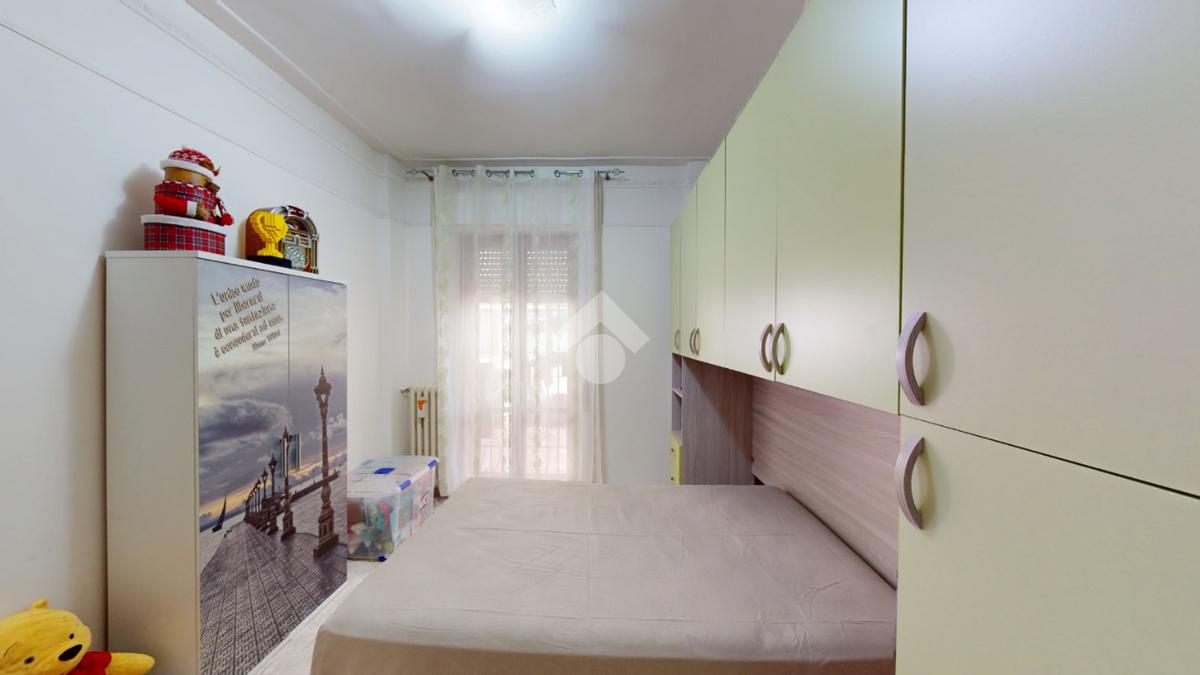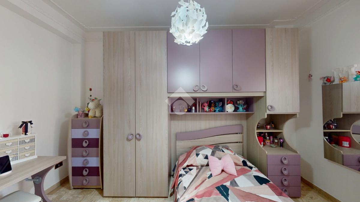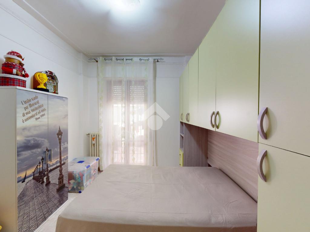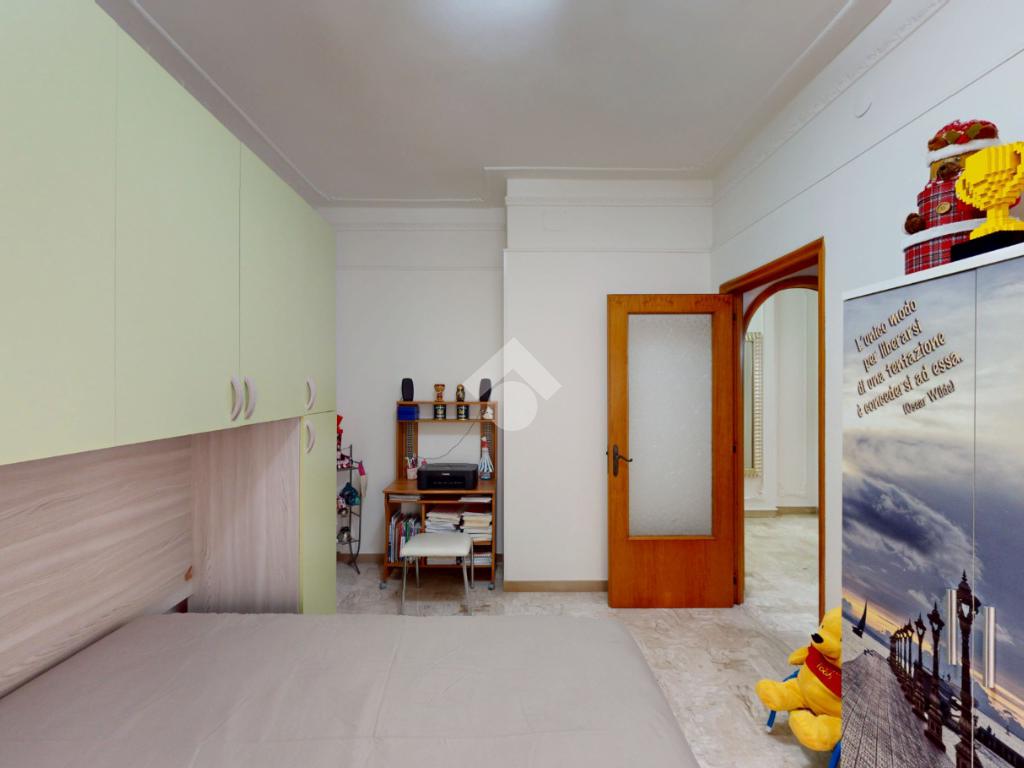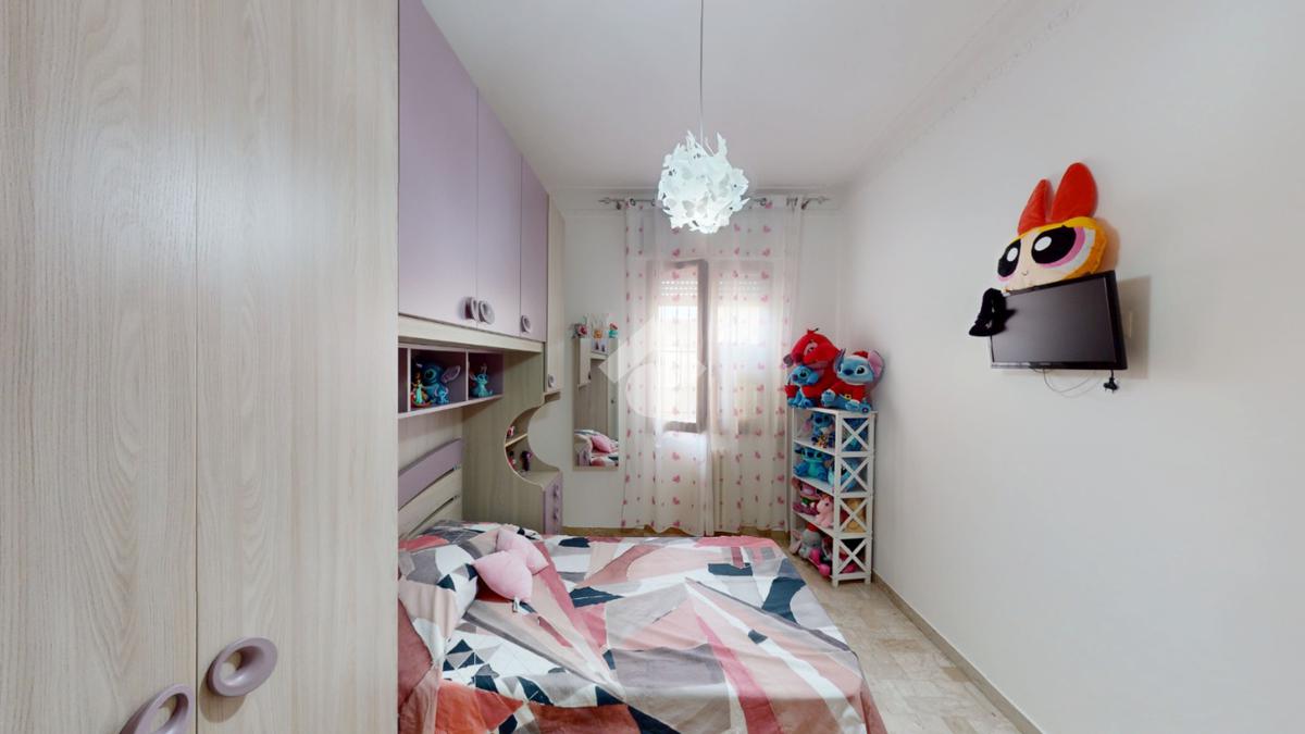 Un disimpegno collega la zona notte, subito dopo essere passati dal soggiorno: si tratta di un luminoso ambiente dalle dimensioni di 32 mq, luminoso grazie all'ampia finestra presente oltre che all'accesso al balcone il quale affaccia su Via Bastioni Carlo V.