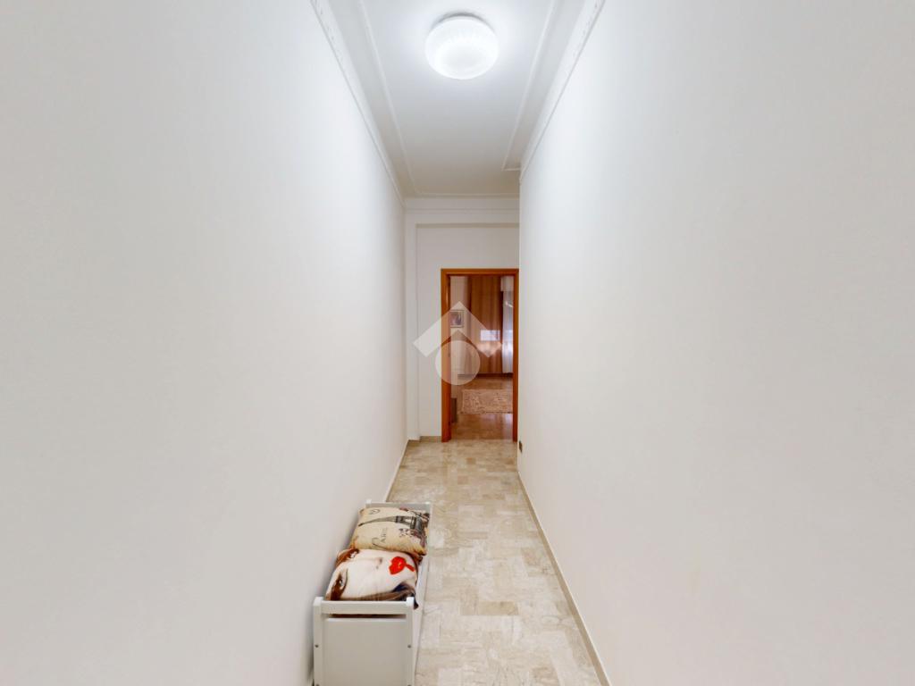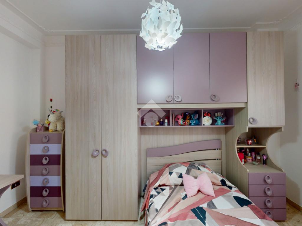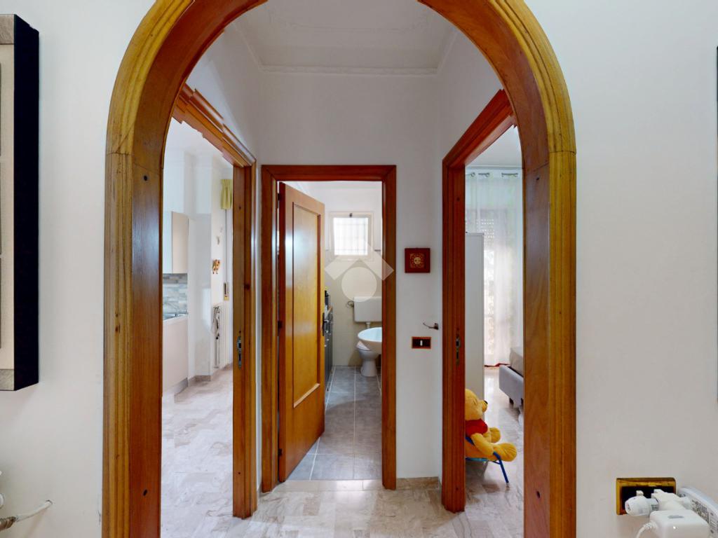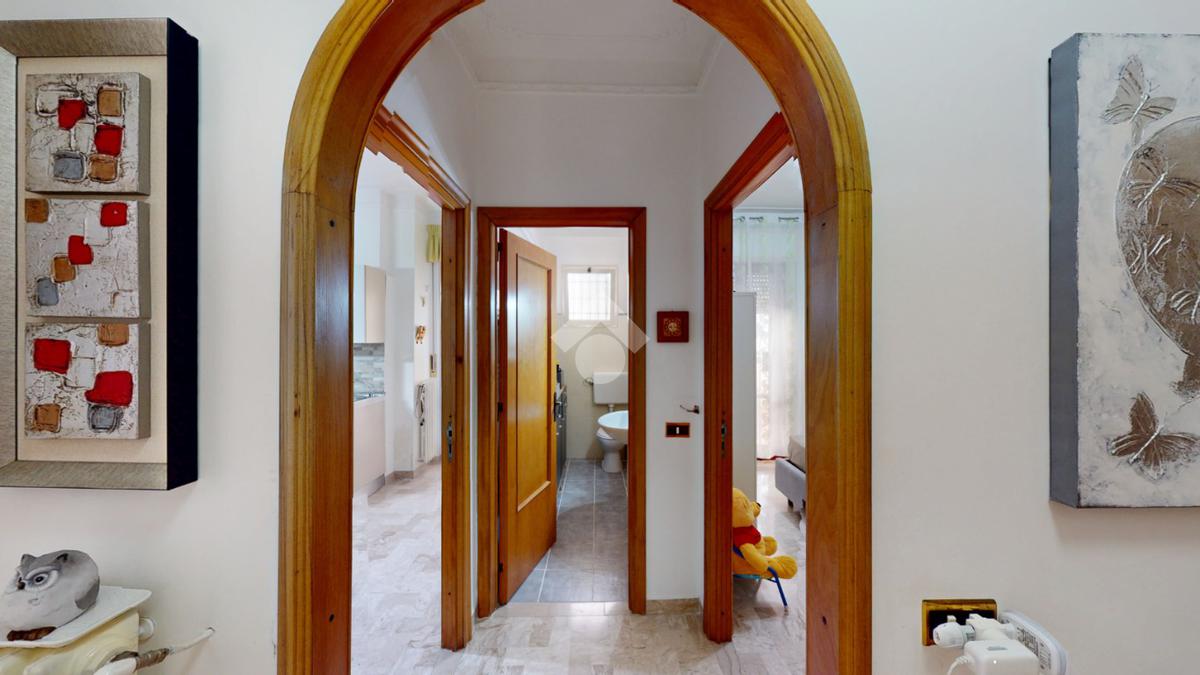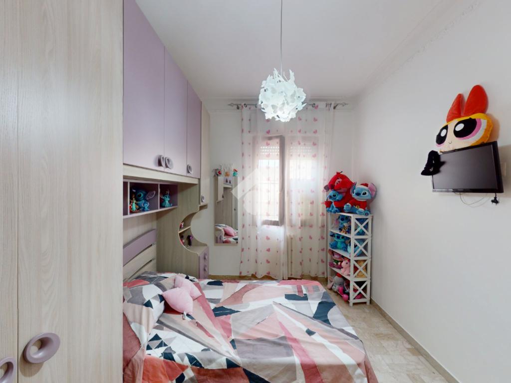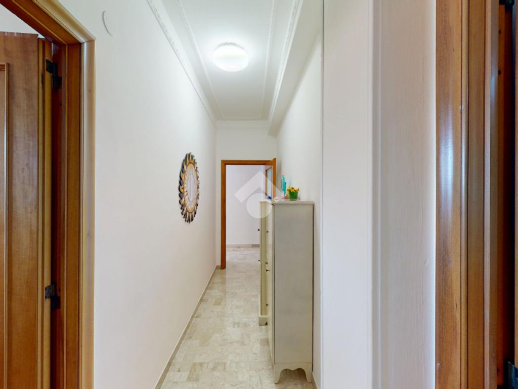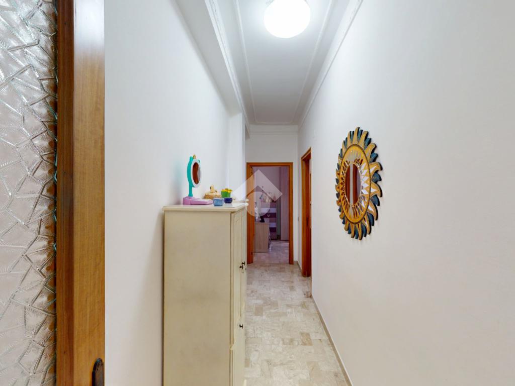 Un disimpegno collega la zona notte, subito dopo essere passati dal soggiorno: si tratta di un luminoso ambiente dalle dimensioni di 32 mq, luminoso grazie all'ampia finestra presente oltre che all'accesso al balcone il quale affaccia su Via Bastioni Carlo V.