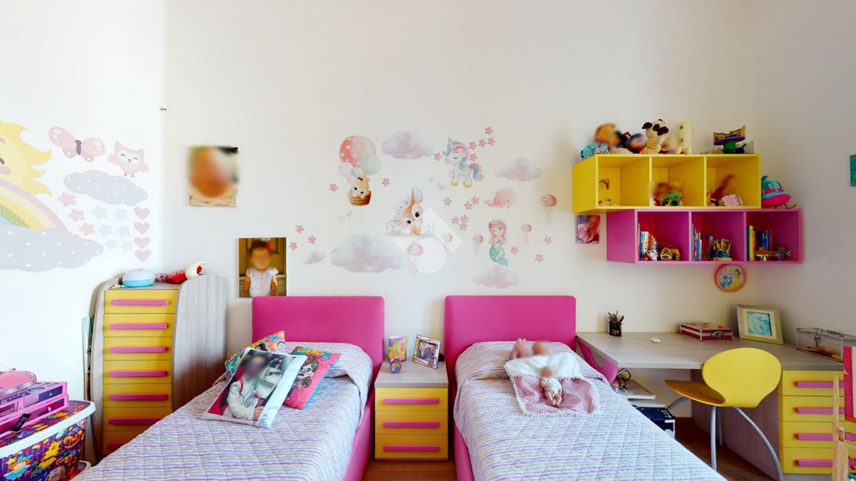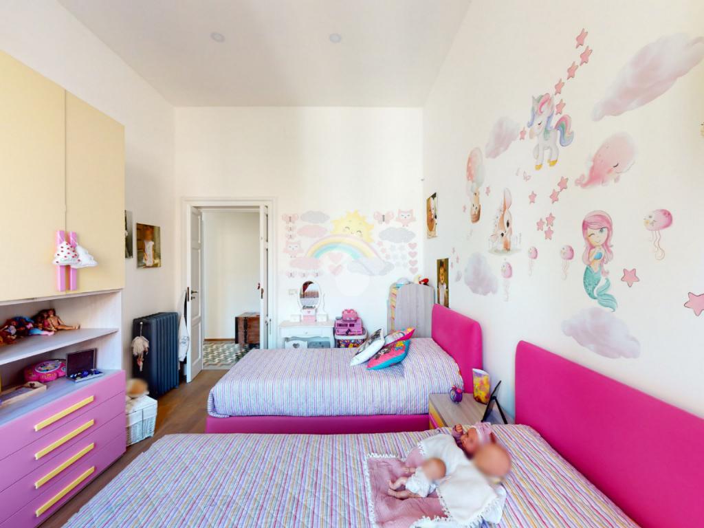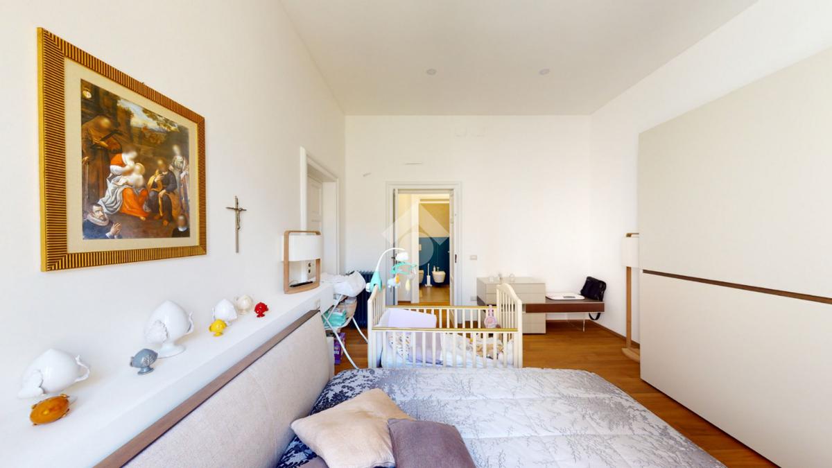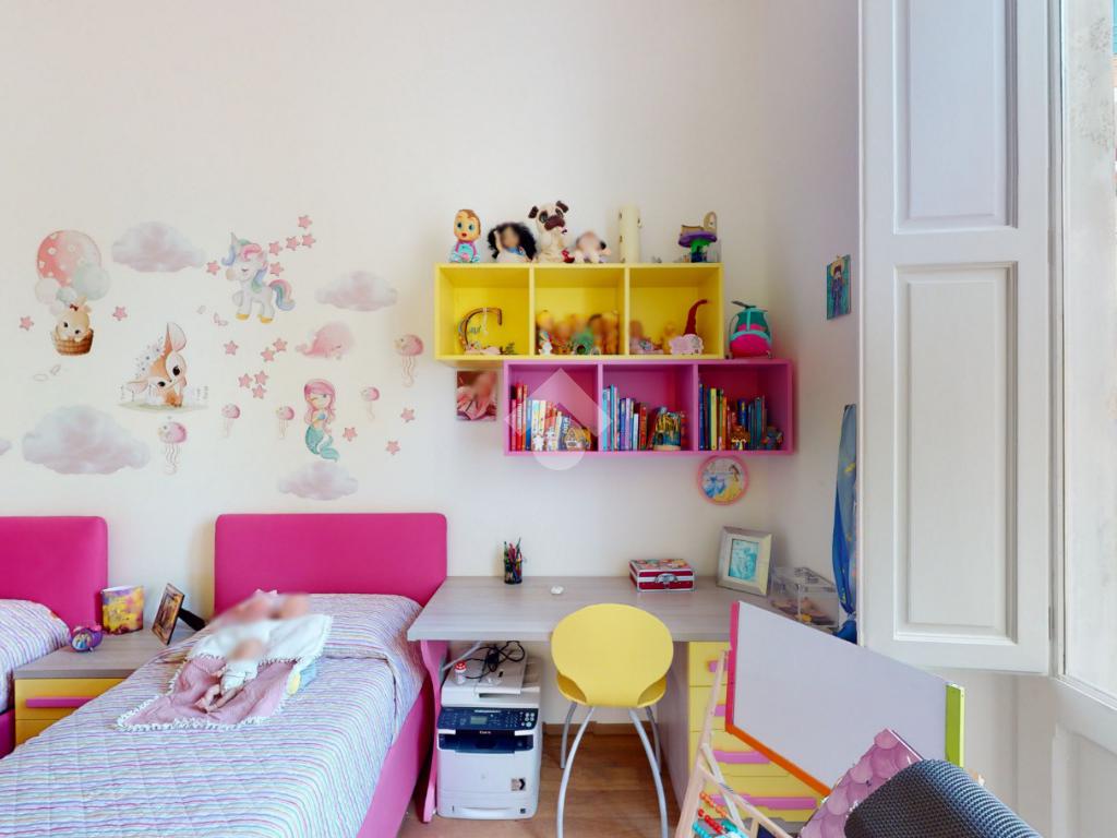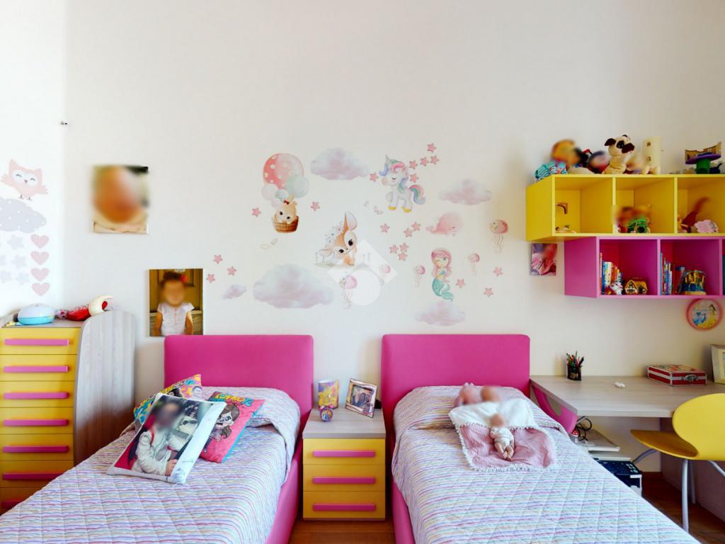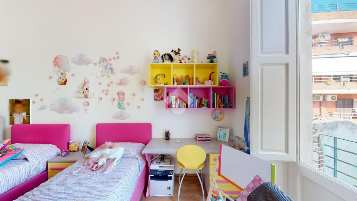 La stanza in questione, oltre a disporre di ampie dimensioni, è anche molto luminosa grazie alle due finestre presenti, delle quali una porta finestra che conduce al balcone, con affaccio su Via Giovanni XXIII.