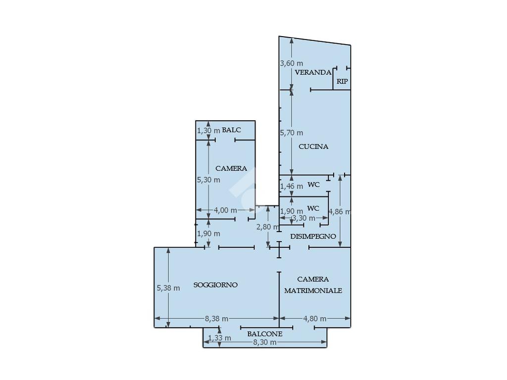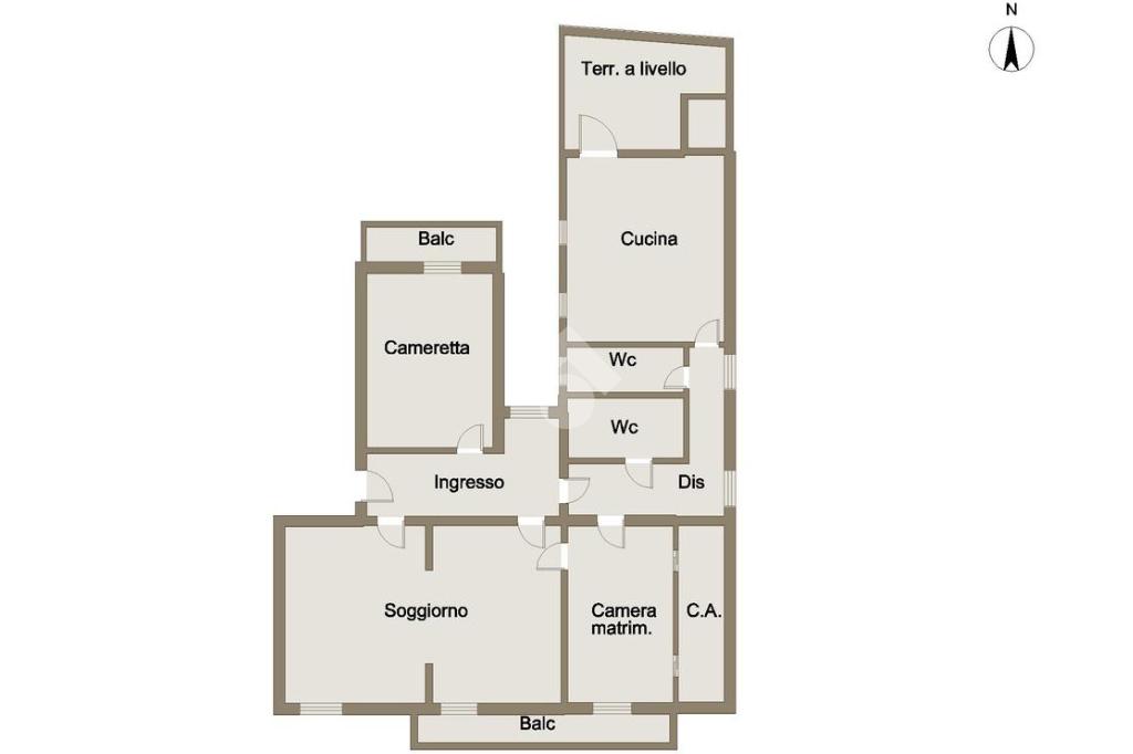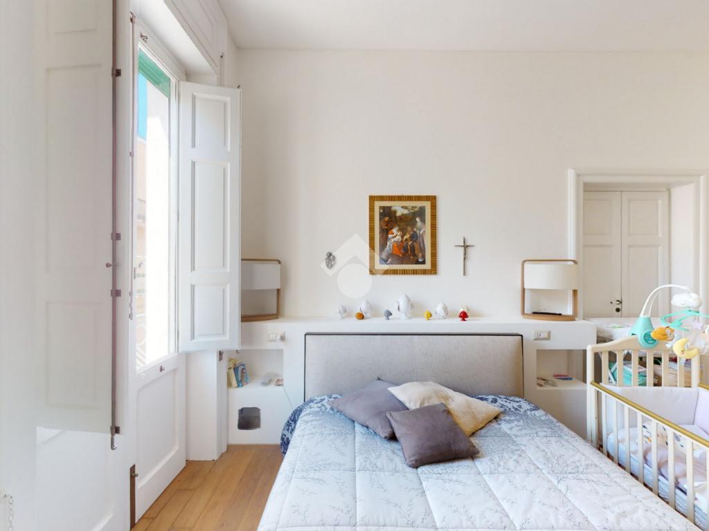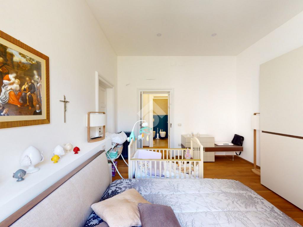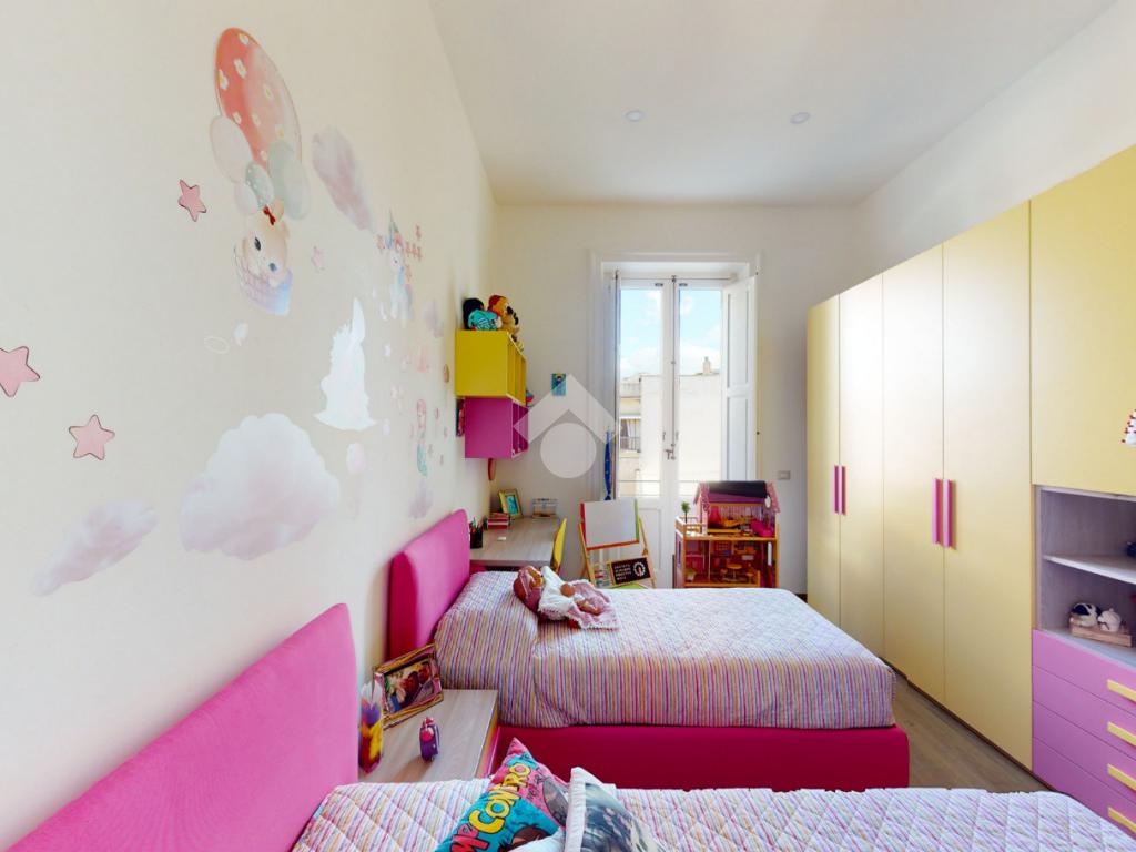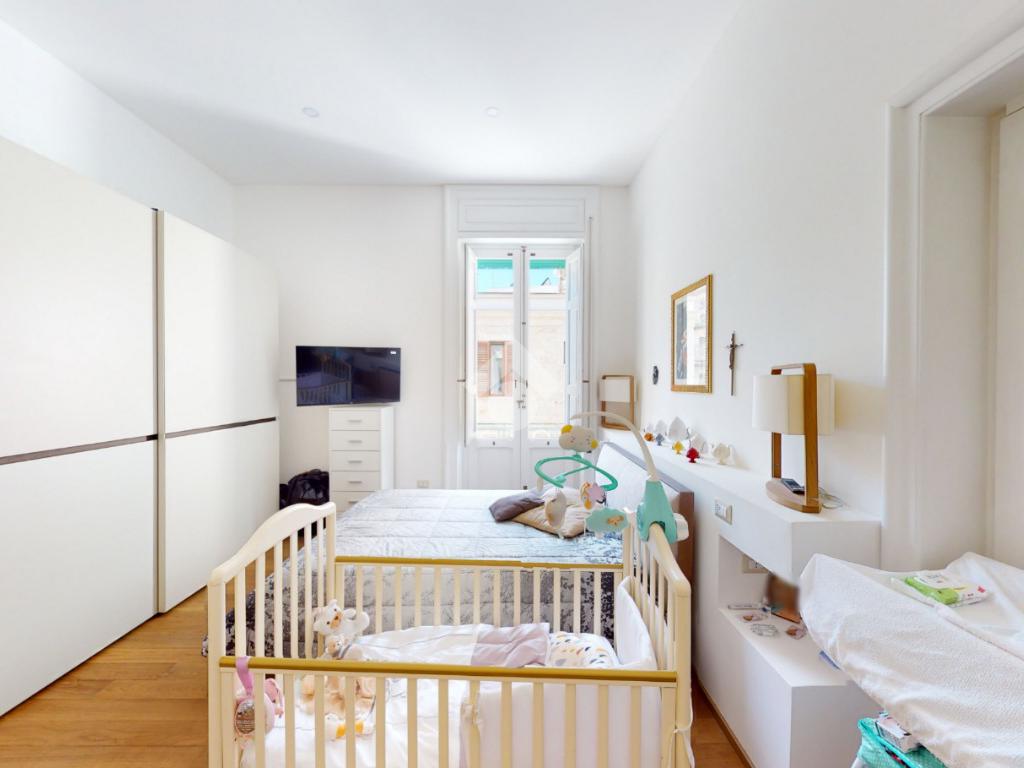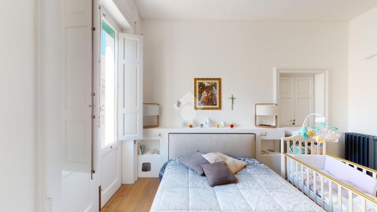La stanza in questione, oltre a disporre di ampie dimensioni, è anche molto luminosa grazie alle due finestre presenti, delle quali una porta finestra che conduce al balcone, con affaccio su Via Giovanni XXIII.