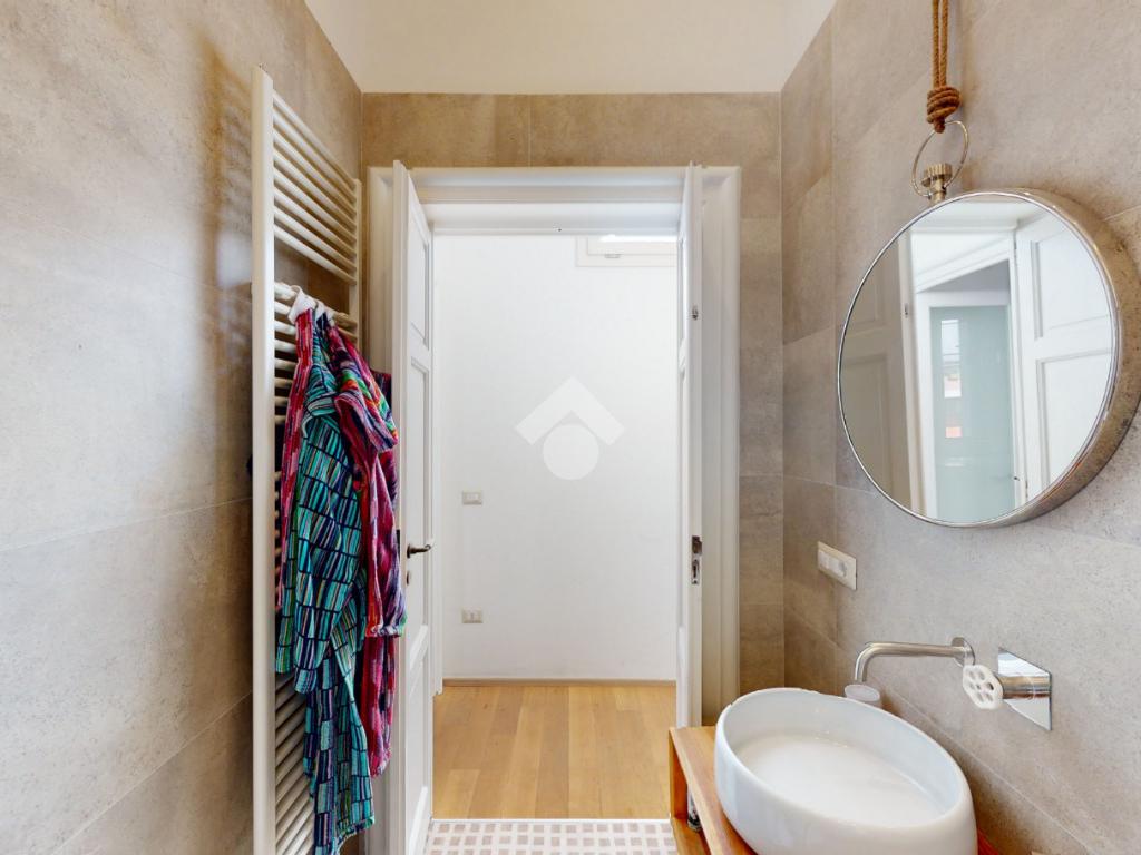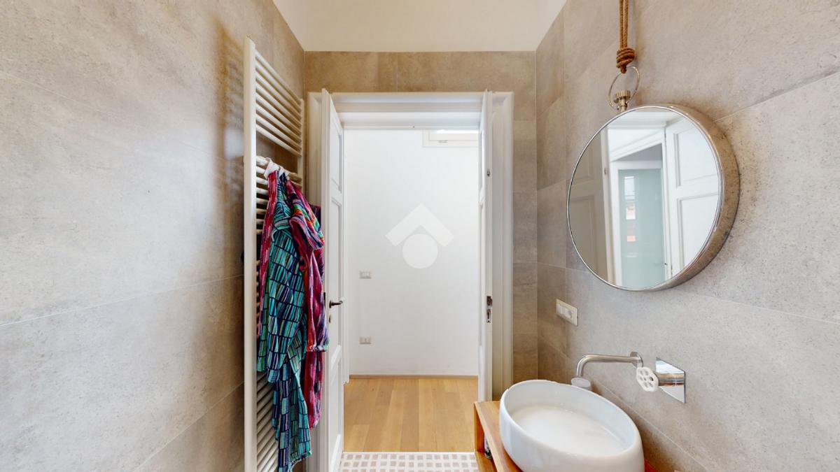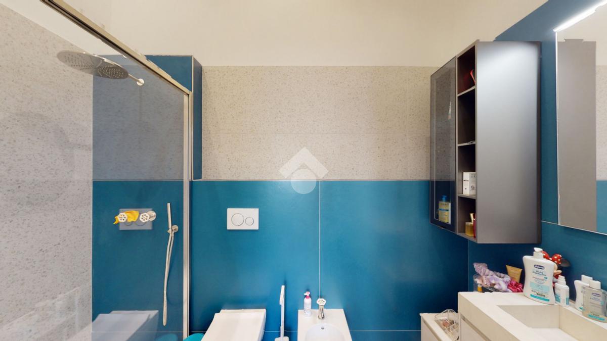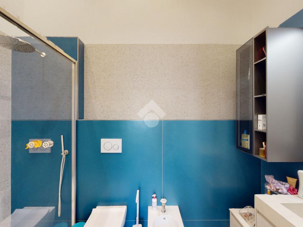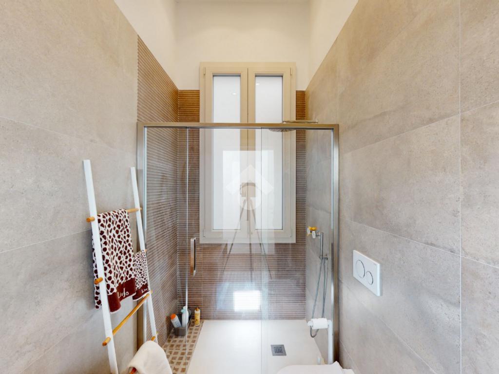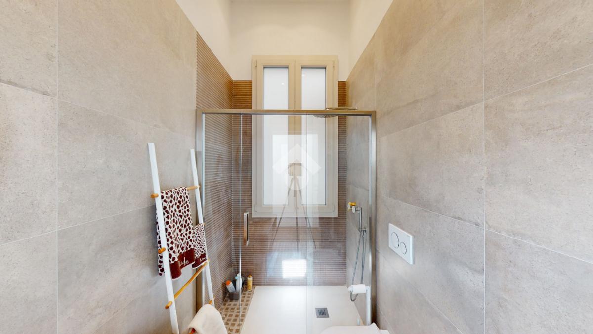 Infine i due bagni con box doccia presenti completano le stanze dell'immobile: sanitari sospesi e termoarredo conferiscono un aspetto moderno.