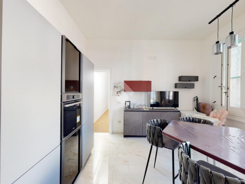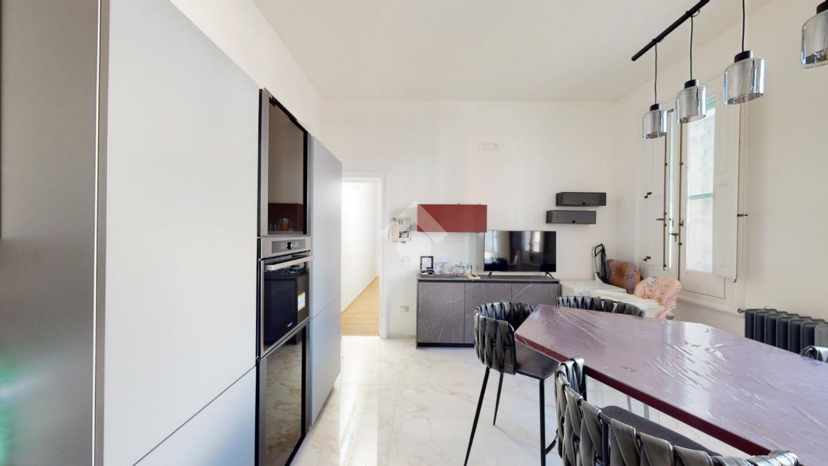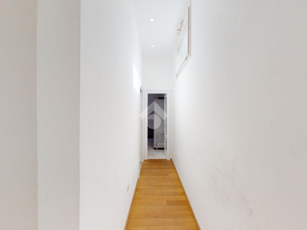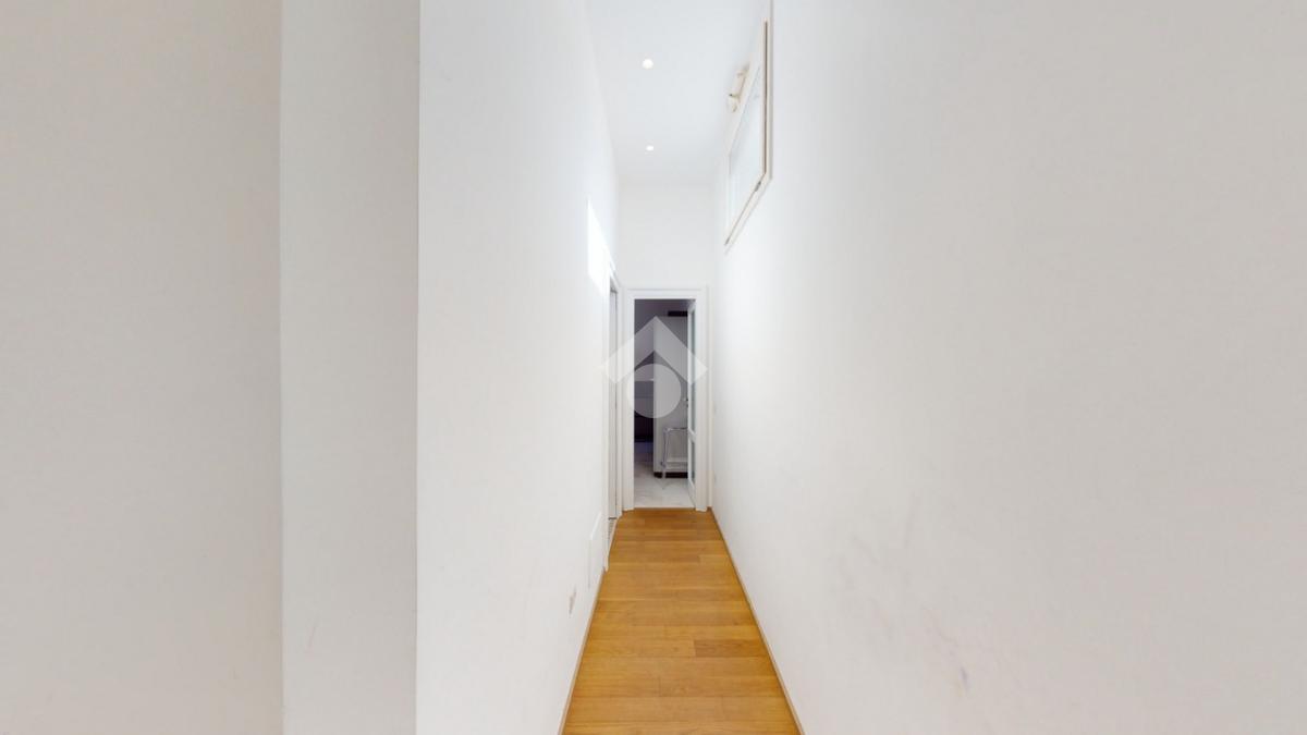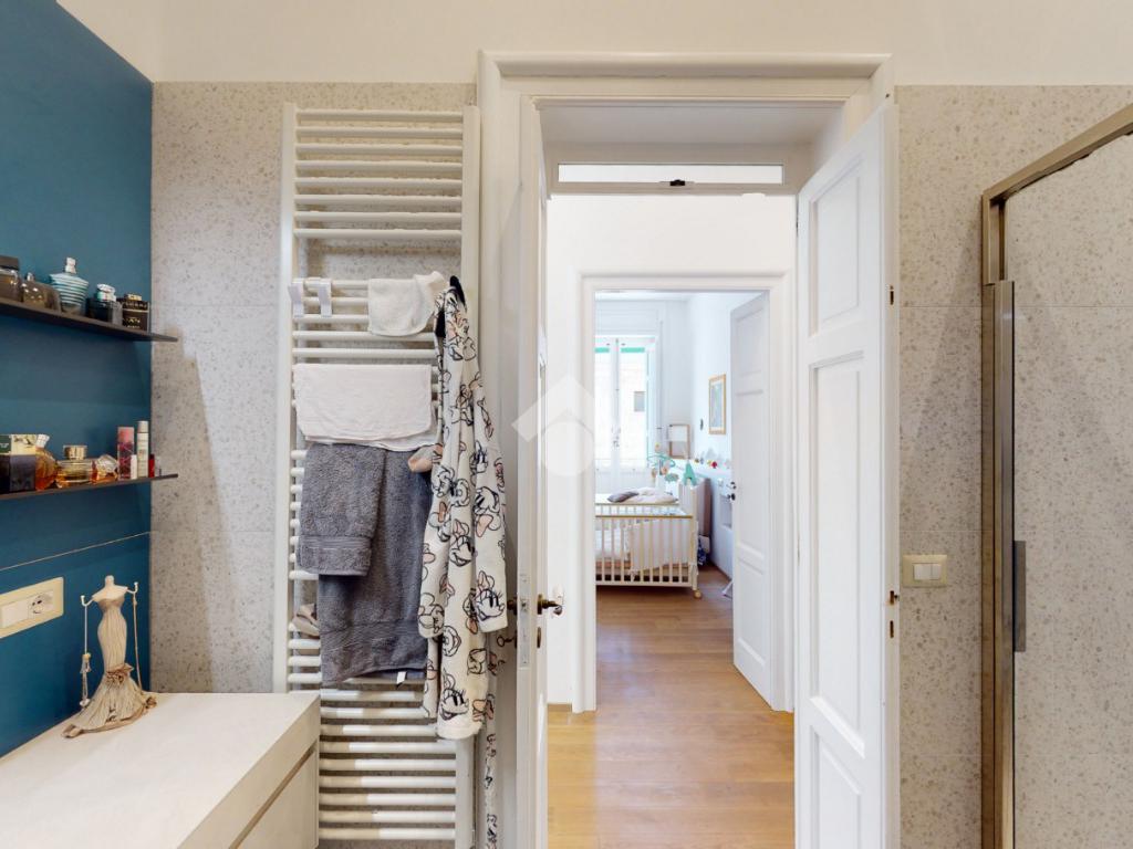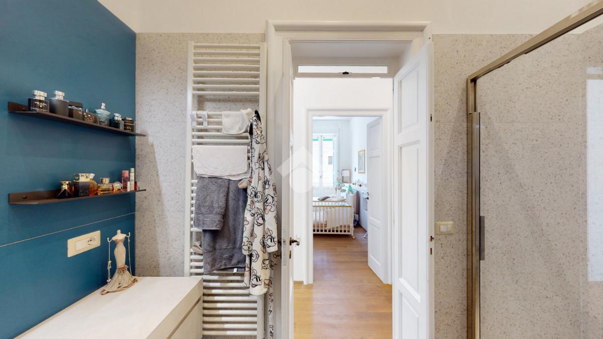 Infine i due bagni con box doccia presenti completano le stanze dell'immobile: sanitari sospesi e termoarredo conferiscono un aspetto moderno.