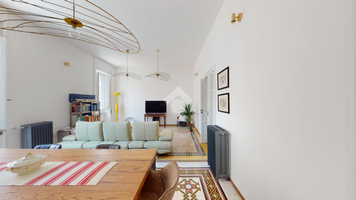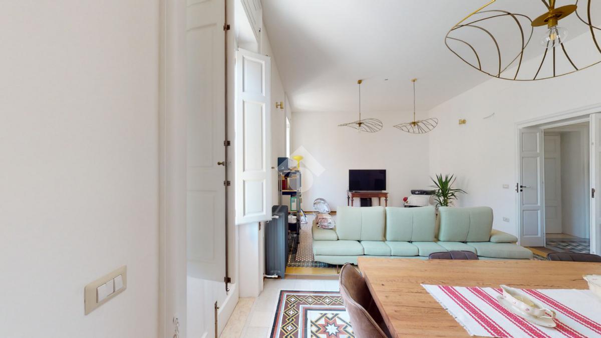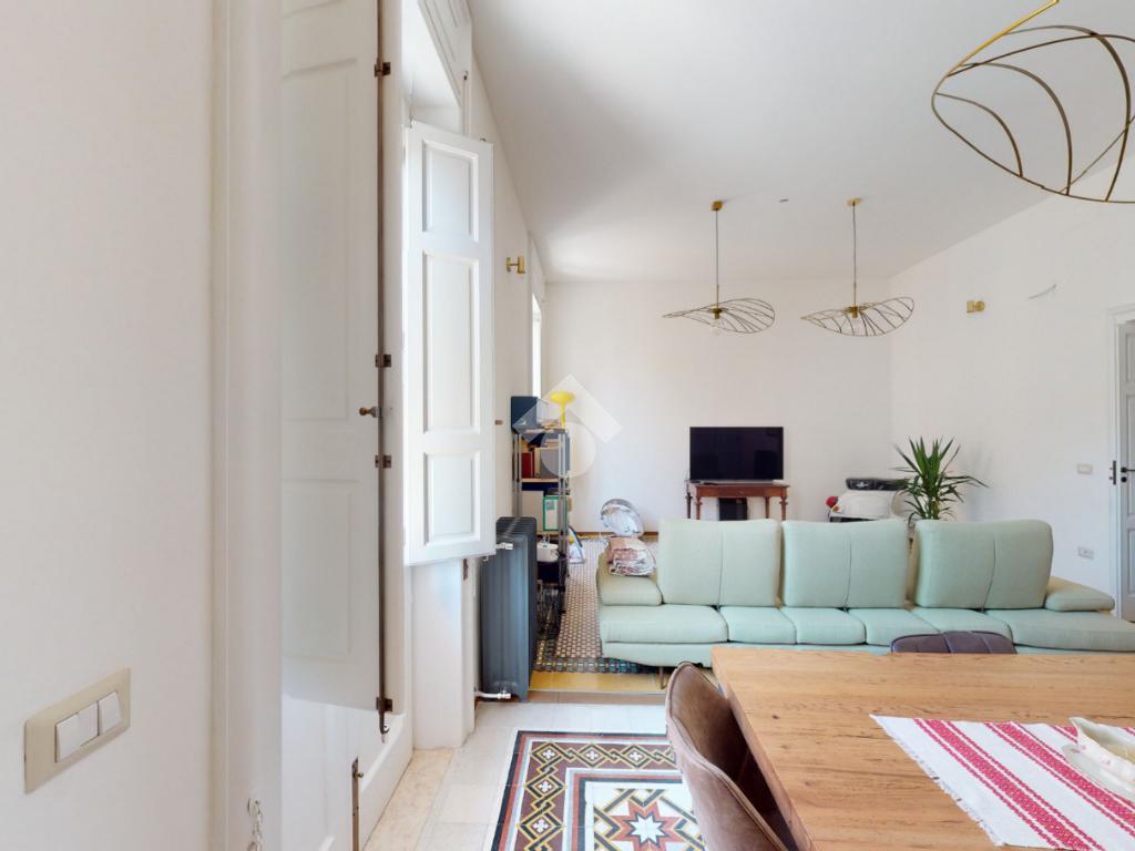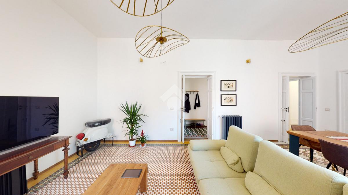 La pavimentazione della zona living è d'epoca, dunque dona un tono elegante e raffinato all'intero ambiente.