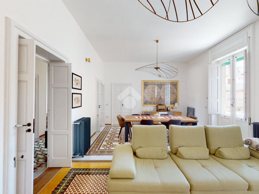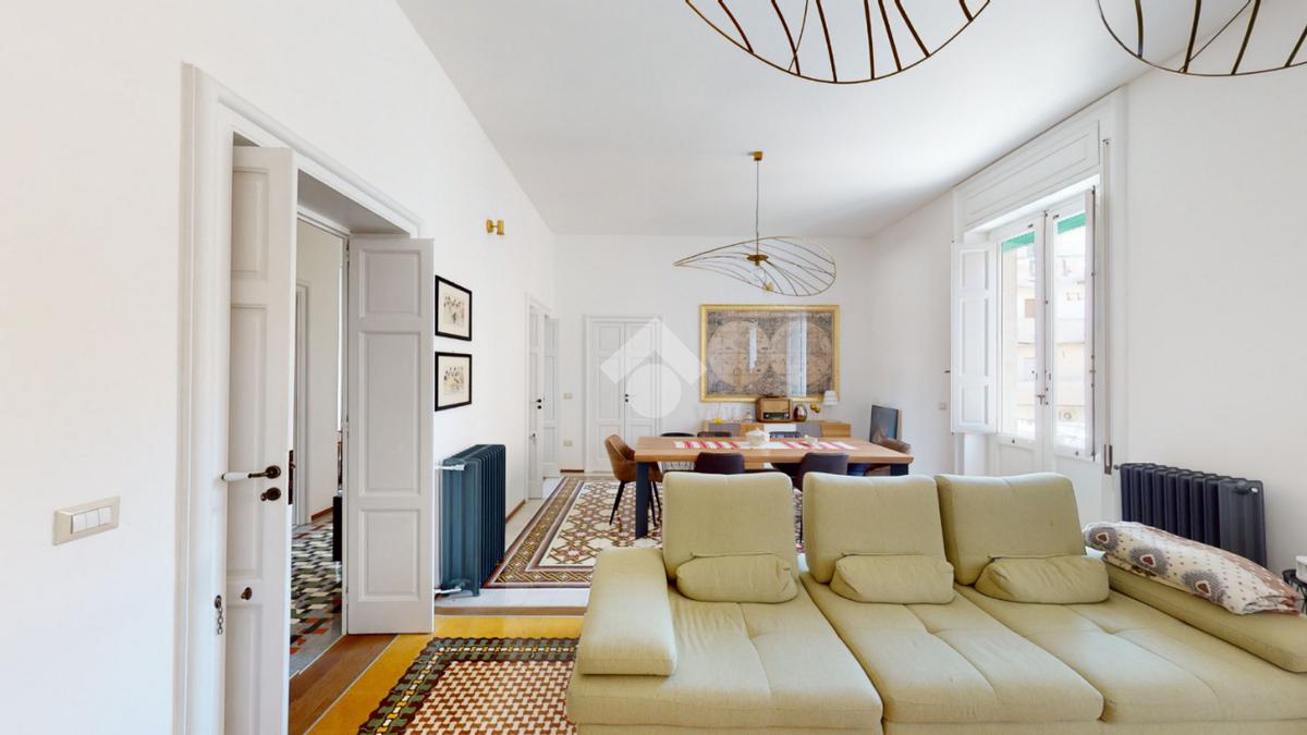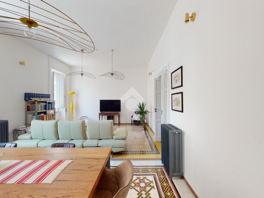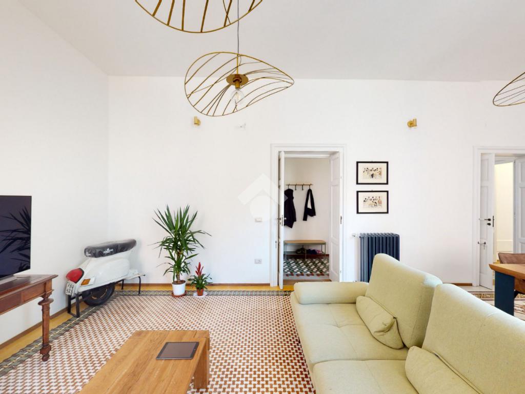La pavimentazione della zona living è d'epoca, dunque dona un tono elegante e raffinato all'intero ambiente.