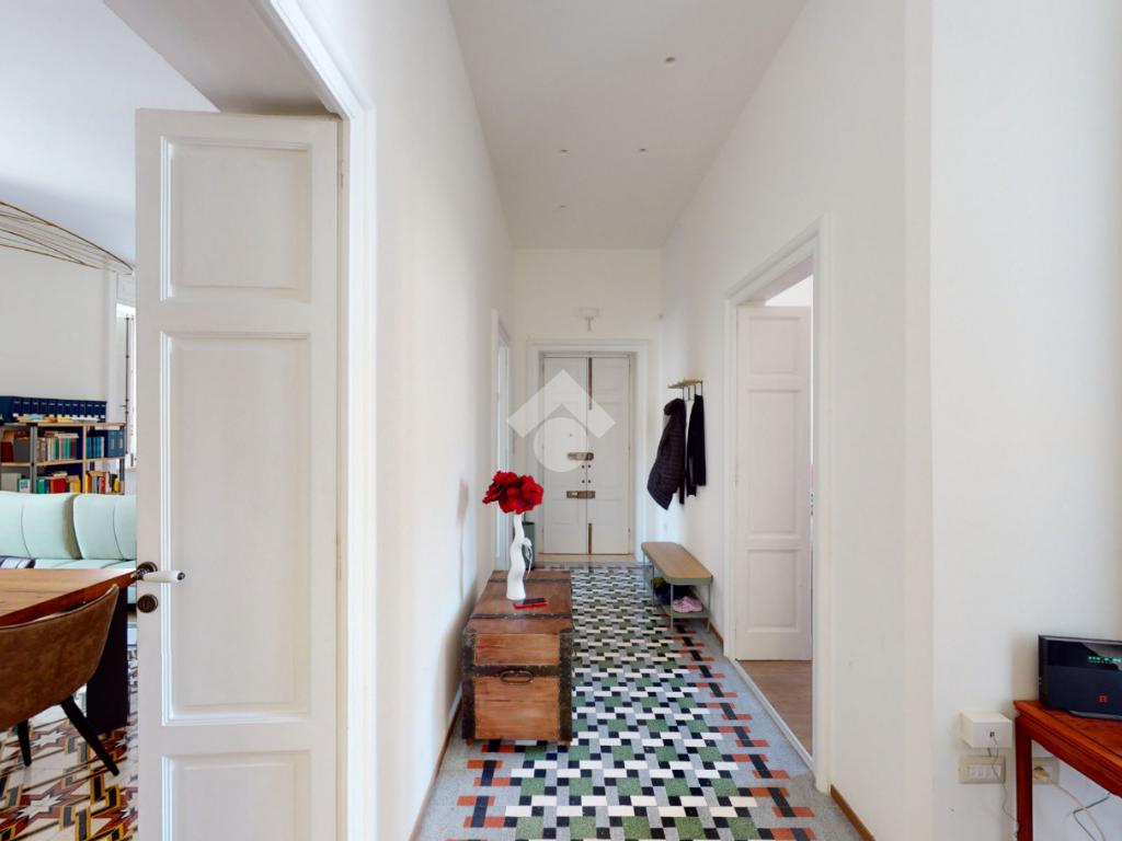 Si tratta di un appartamento in un mini condominio: una rampa di scale con accesso dal piano terra in Via Giovanni XXIII conduce al primo piano dove la porta d'ingresso dà l'accesso in un disimpegno luminoso ed a seguire al soggiorno.