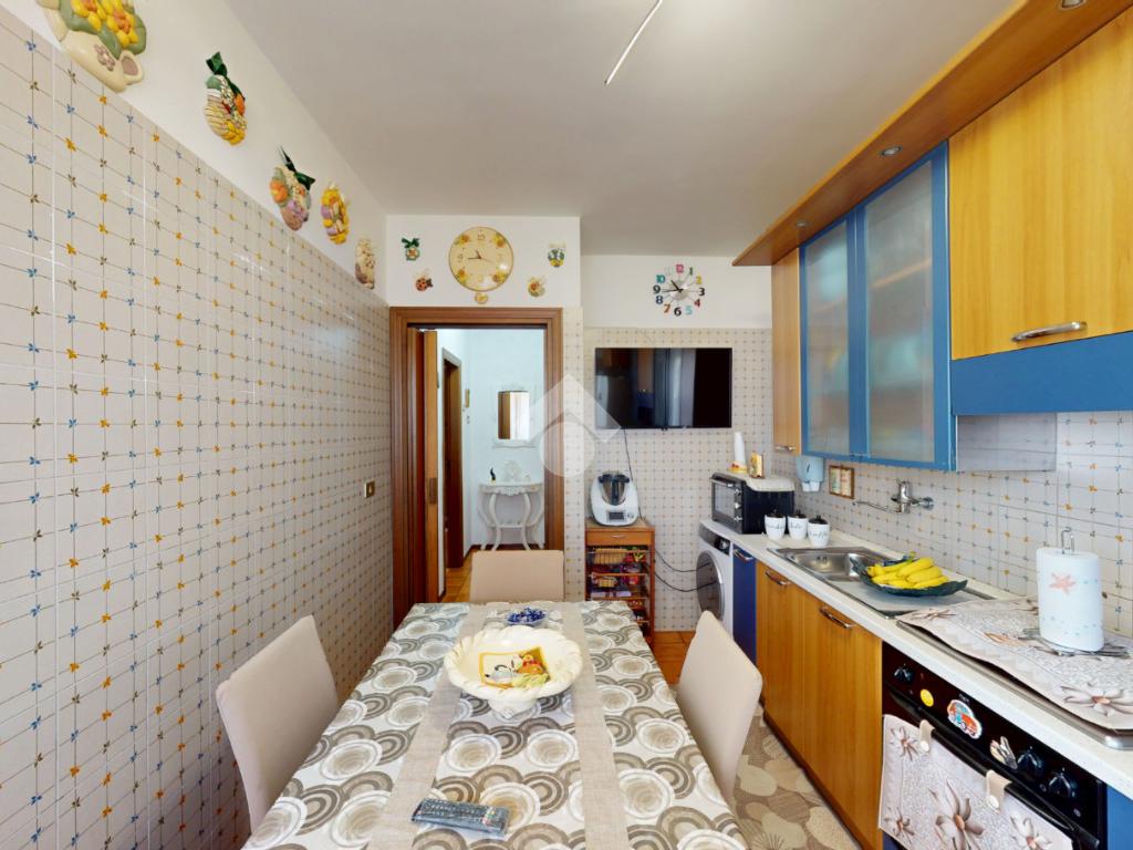 Al secondo piano con ascensore si accede in un ingresso, il quale conduce al soggiorno, luminoso con accesso al balcone che affaccia su Via Provinciale per San Vito.