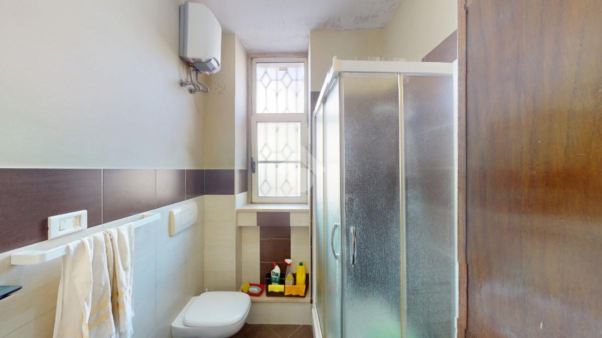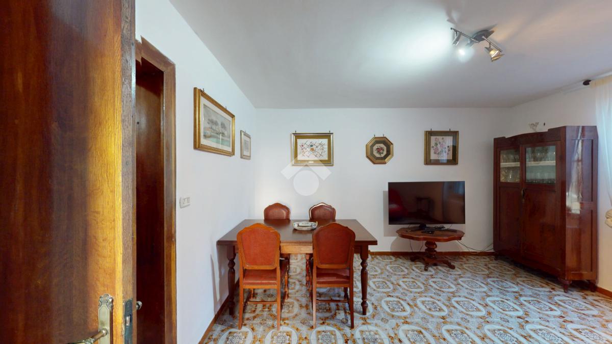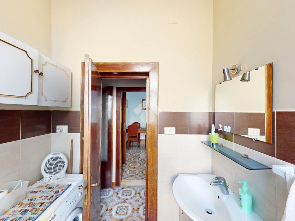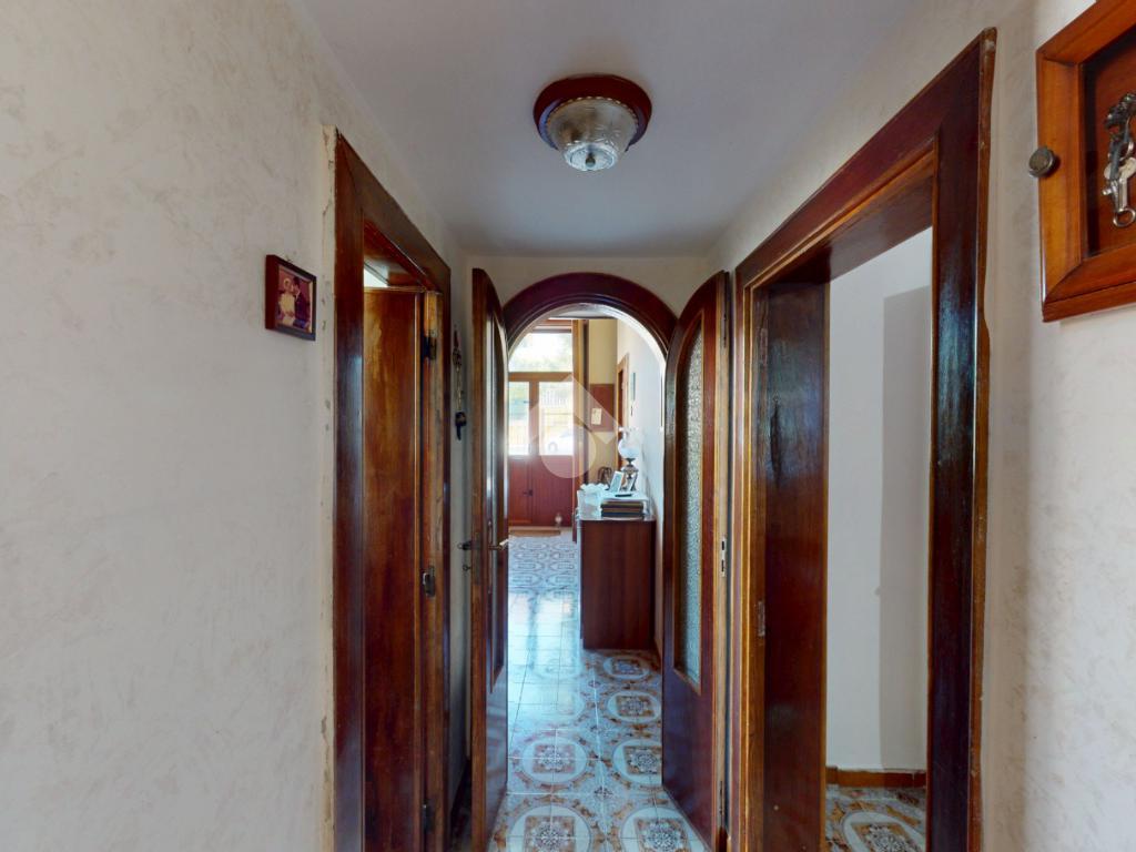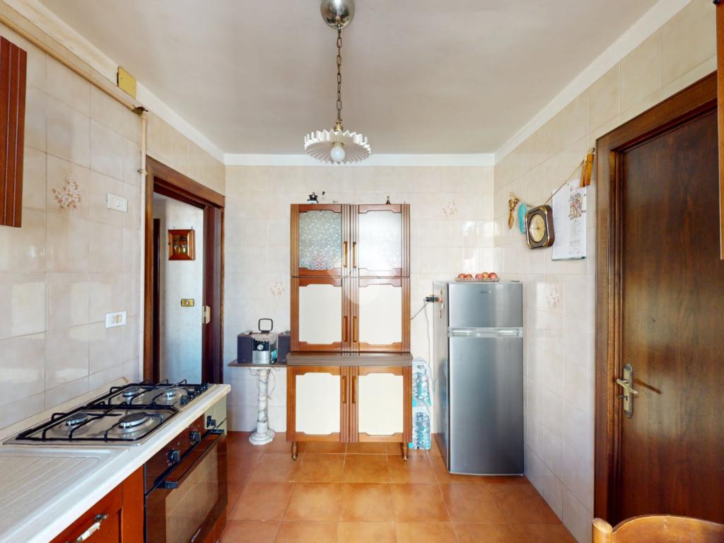 Un disimpegno conduce alla cucina, abitabile, con accesso all'utile ripostiglio, ed infine un bagno con box doccia, a completare il piano terra.