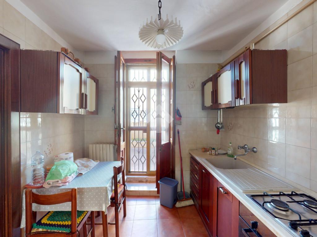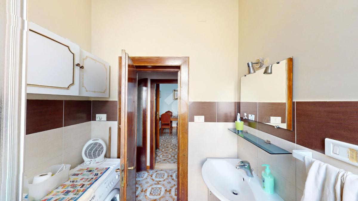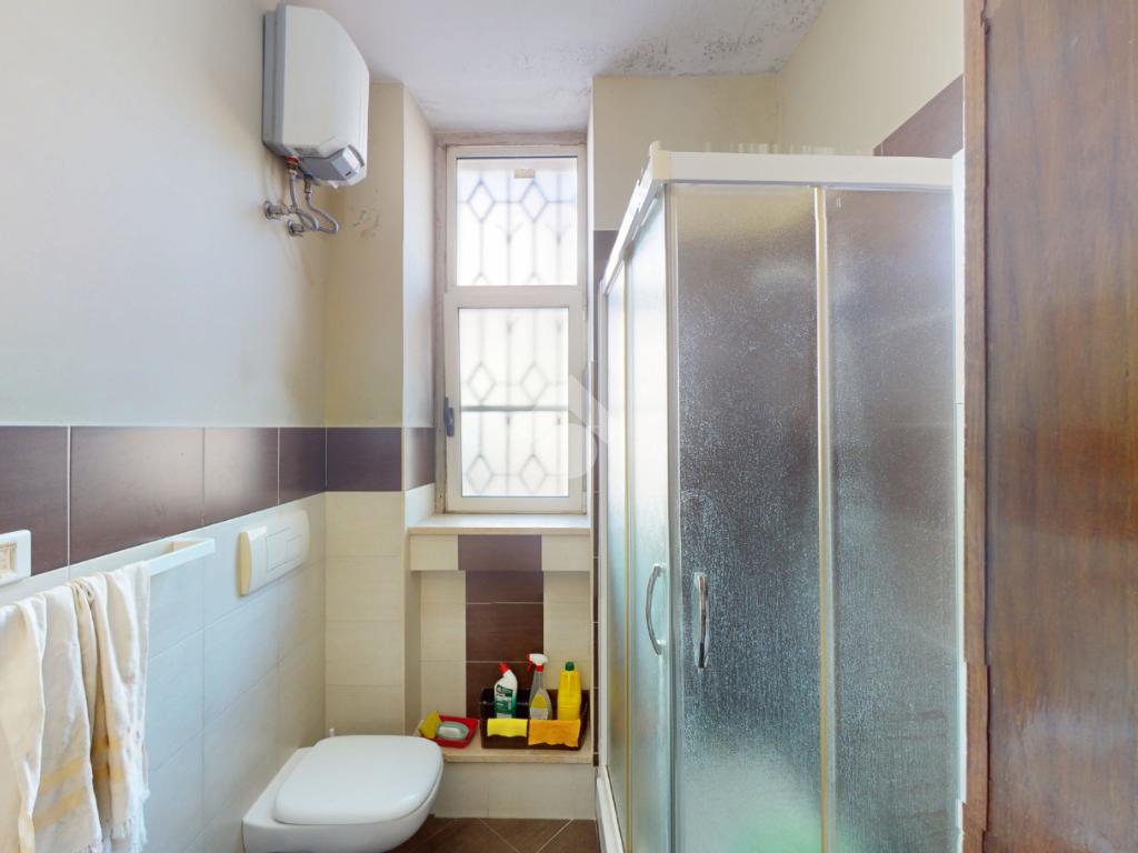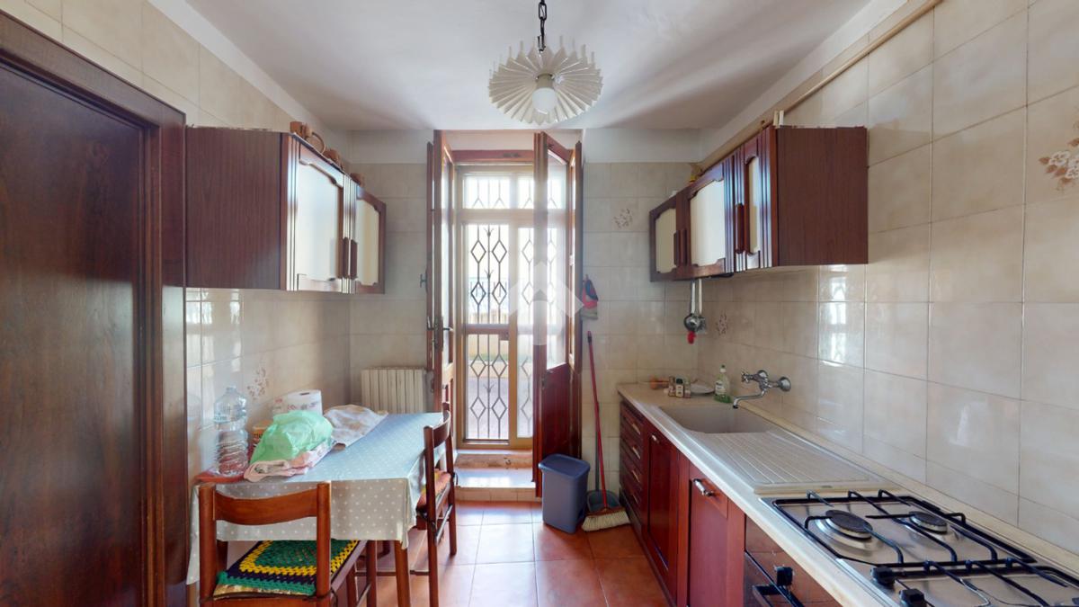 Un disimpegno conduce alla cucina, abitabile, con accesso all'utile ripostiglio, ed infine un bagno con box doccia, a completare il piano terra.