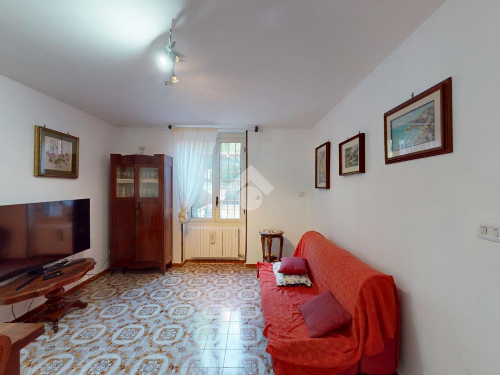 Con accesso dal giardino, un ingresso dalle dimensioni di 13 mq conduce agli ambienti dell'immobile: per ordine, una luminosa camera matrimoniale di 16 mq, a seguire un ampio soggiorno, di 17 mq.