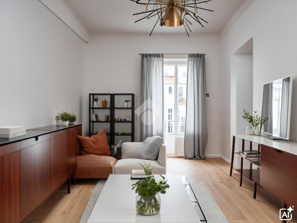 Il soggiorno dell'appartamento di 20 mq è un ampio e luminoso ambiente grazie all'accesso al balcone presente, con affaccio su Via dè Catanzaro.