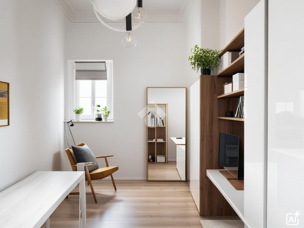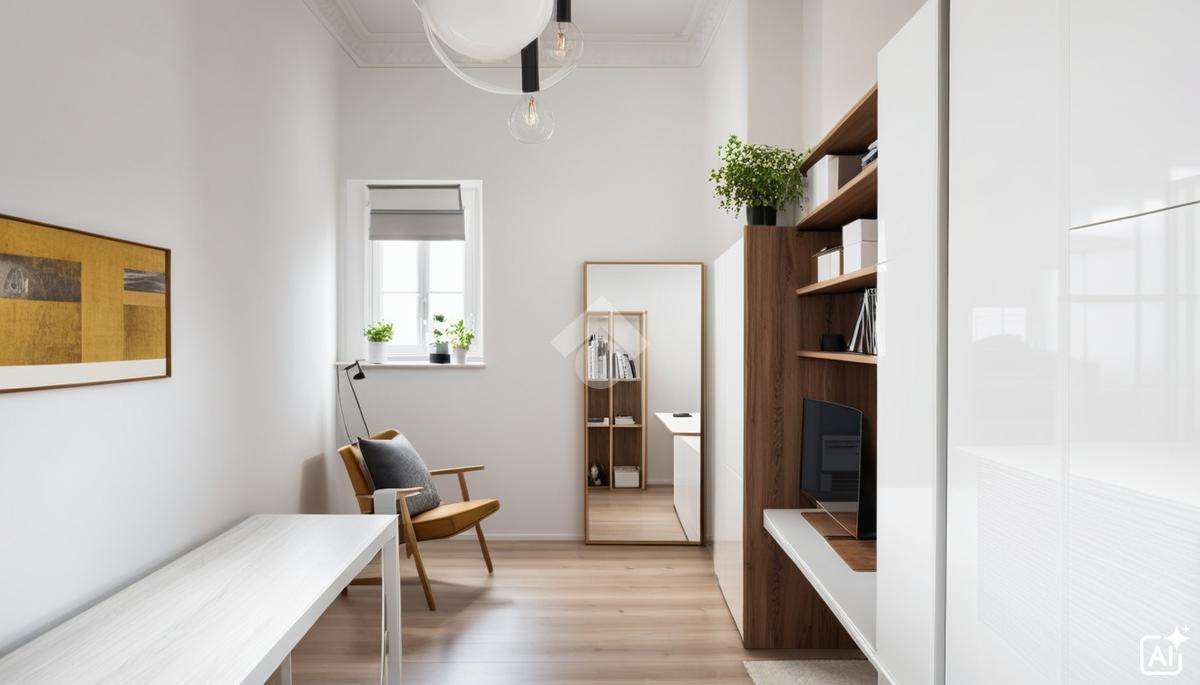 Uno studio di 10 mq dispone di accesso al bagno con vasca ed, a seguire, lo stesso disimpegno dal quale si accede alla stanza in questione conduce al secondo bagno dell'immobile, di servizio.