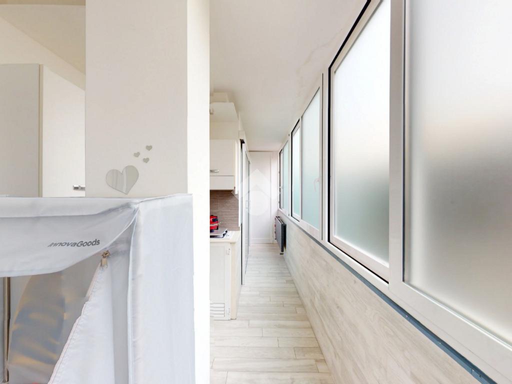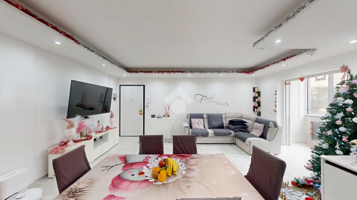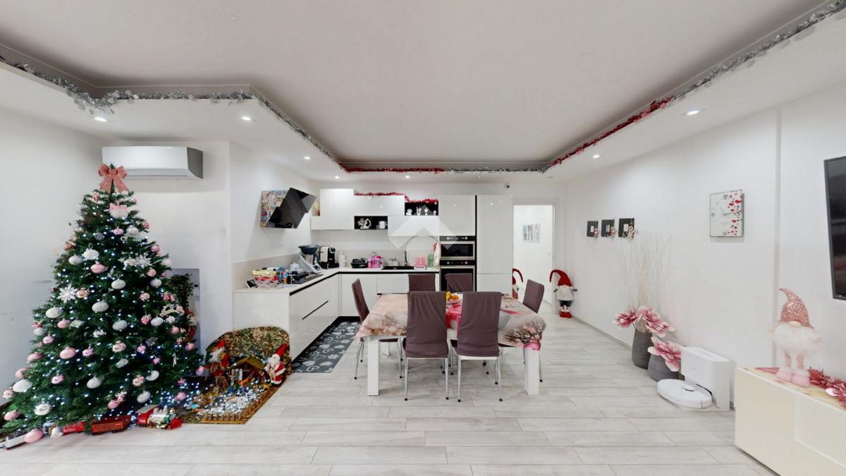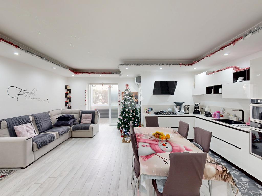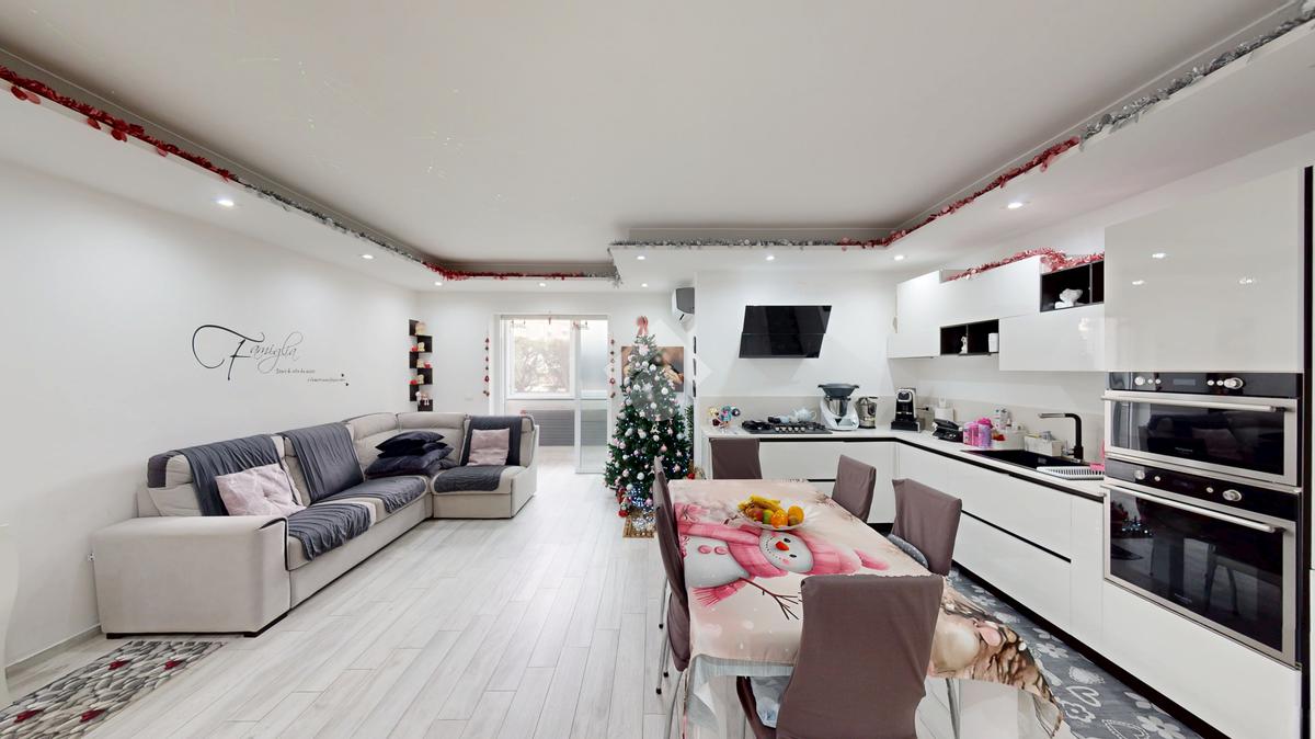 L'ingresso in casa si ha in un ampio e luminoso soggiorno dalle dimensioni di 33 mq, il quale dispone di angolo cottura a vista e di accesso al balcone.