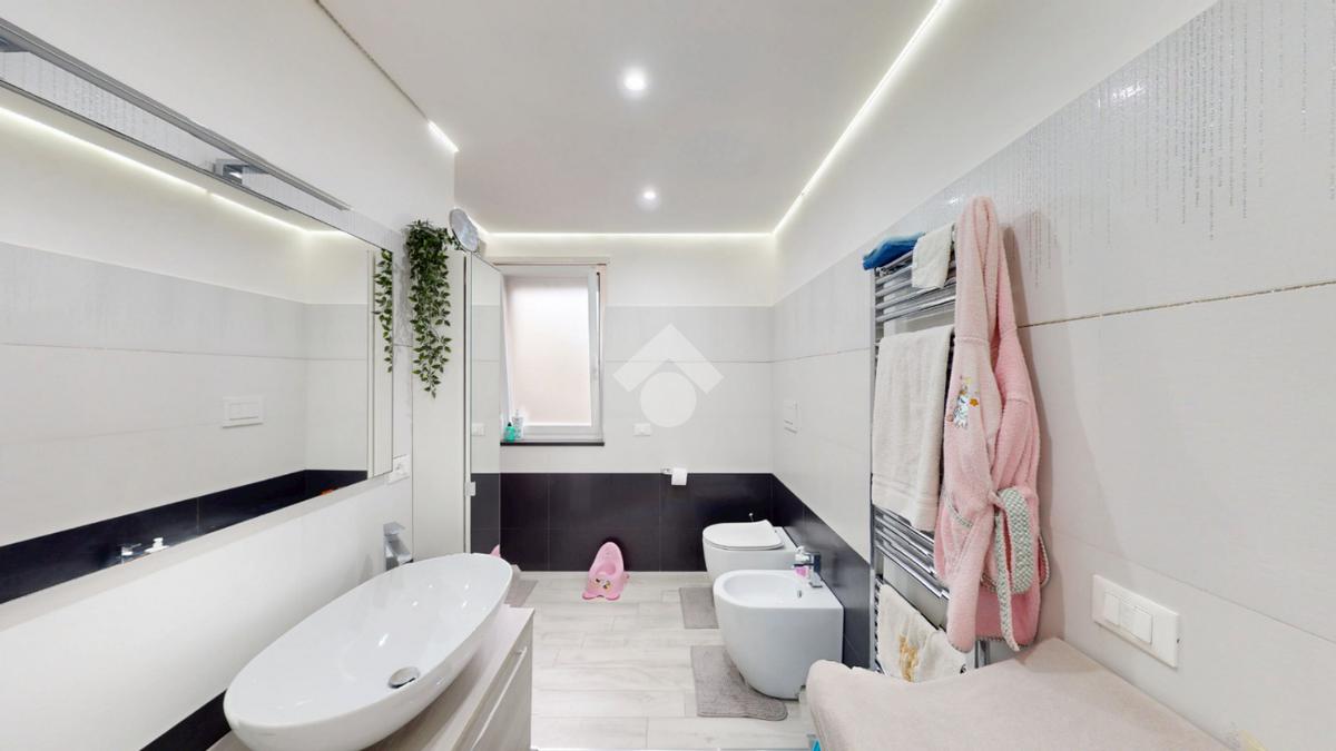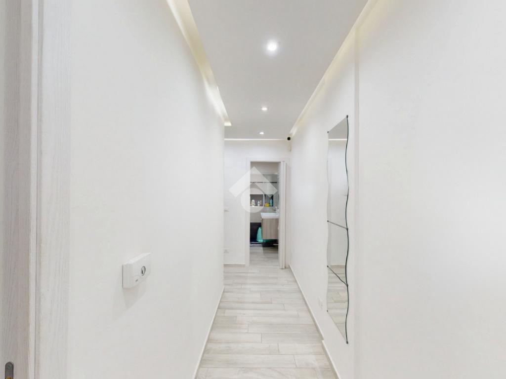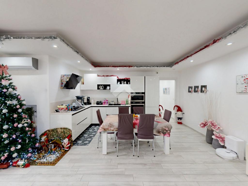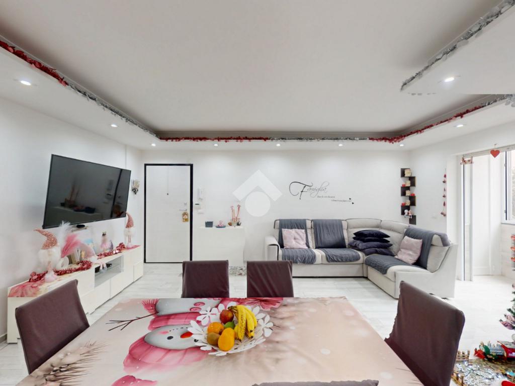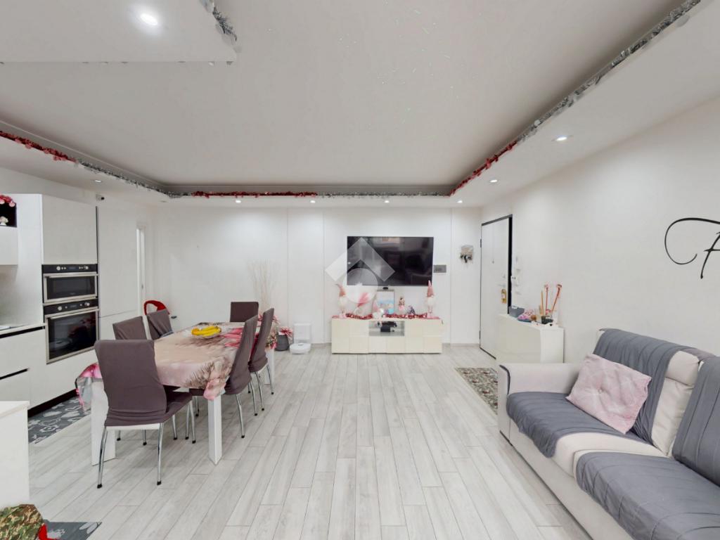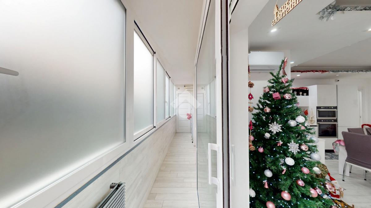 L'ingresso in casa si ha in un ampio e luminoso soggiorno dalle dimensioni di 33 mq, il quale dispone di angolo cottura a vista e di accesso al balcone.