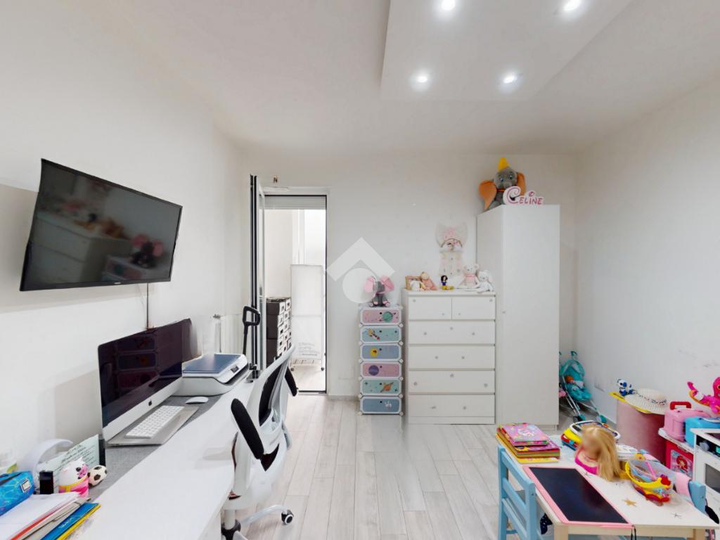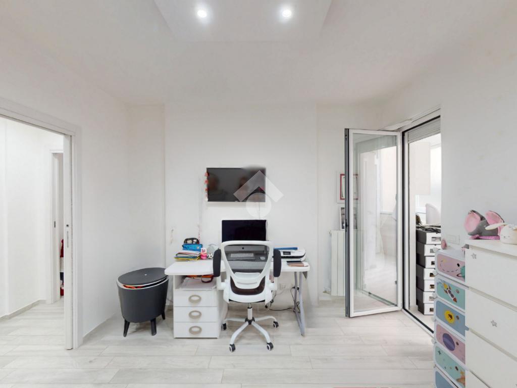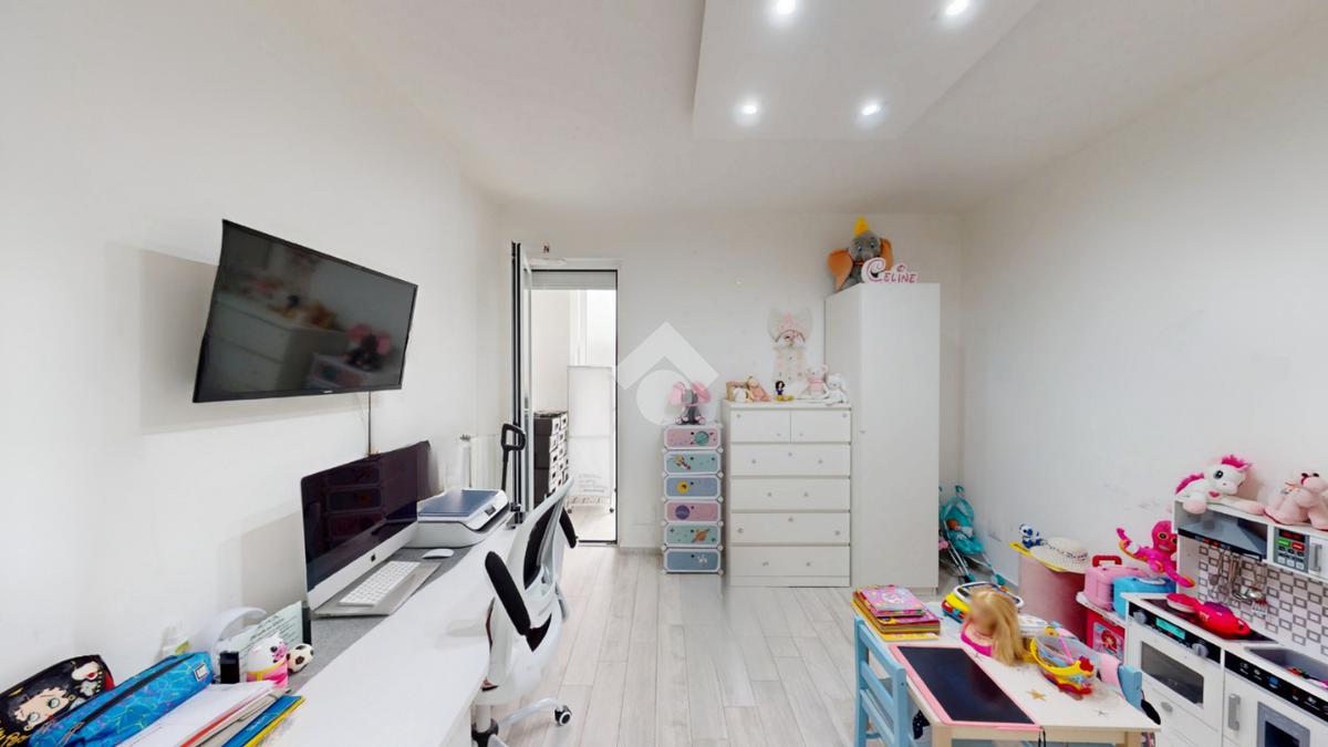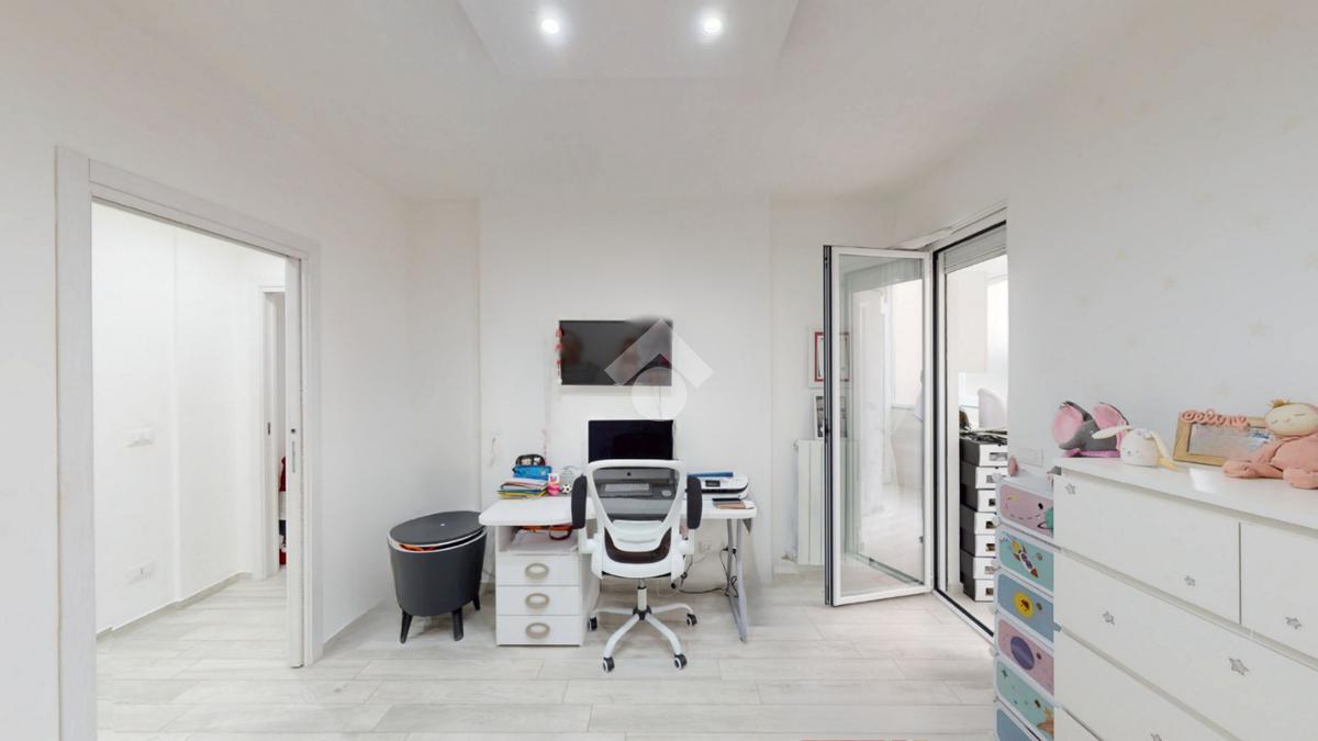 Un disimpegno conduce alla zona notte dell'immobile, a partire dalla prima stanza che è la cameretta, dalle dimensioni di 13 mq, anch'essa con accesso al balcone.
