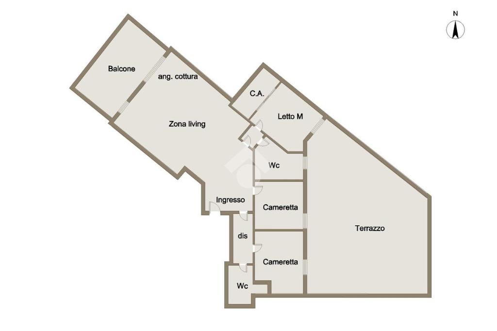 Entrambe le camerette dispongono di accesso al terrazzo a livello, il quale è senza dubbio il punto di forza dell'immobile, dalle dimensioni di 50 mq circa.