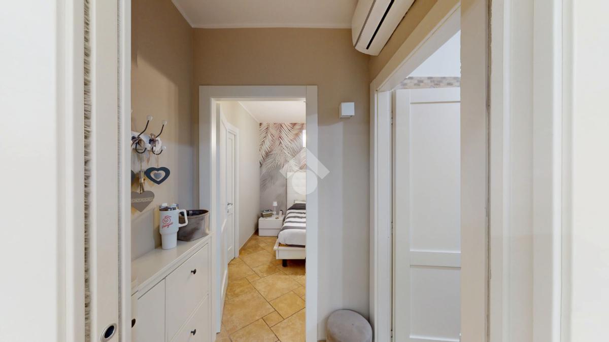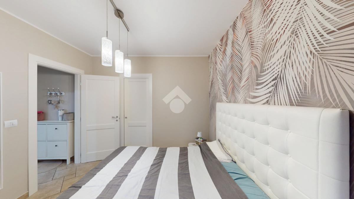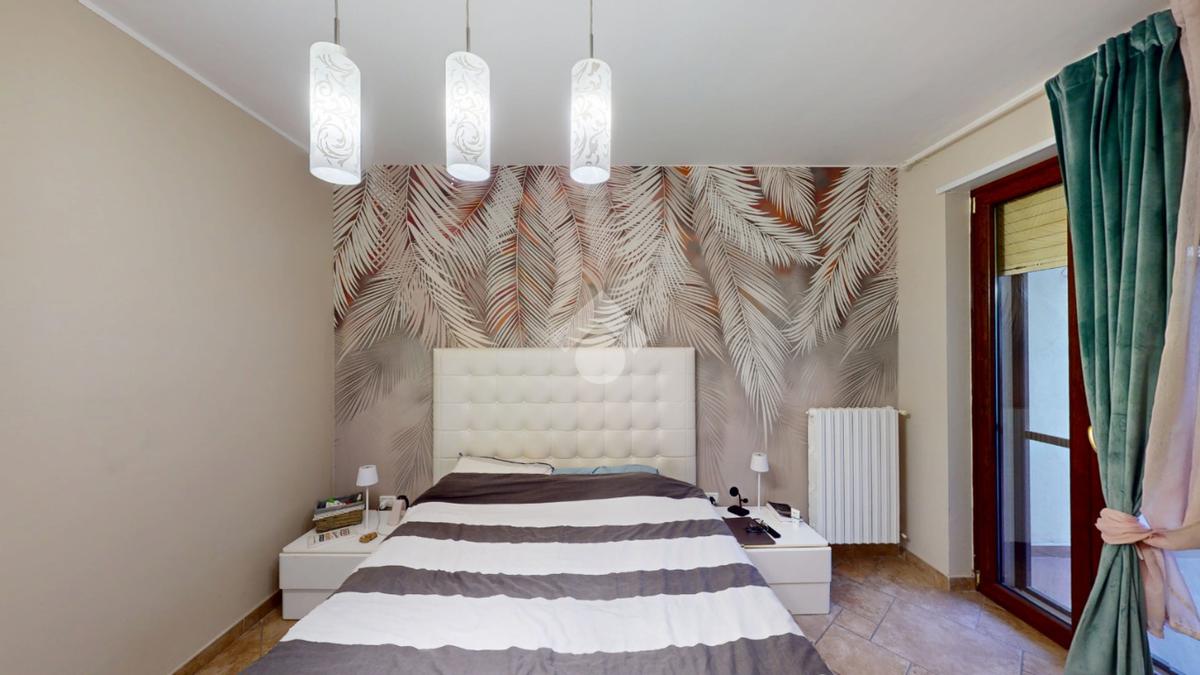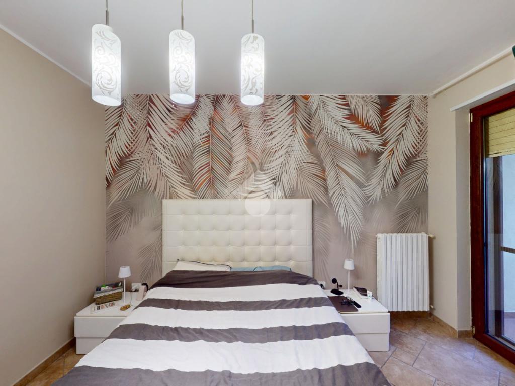 Un disimpegno dalla zona living conduce alla camera matrimoniale, di 13 mq, con cabina armadio ed accesso al terrazzo a livello.