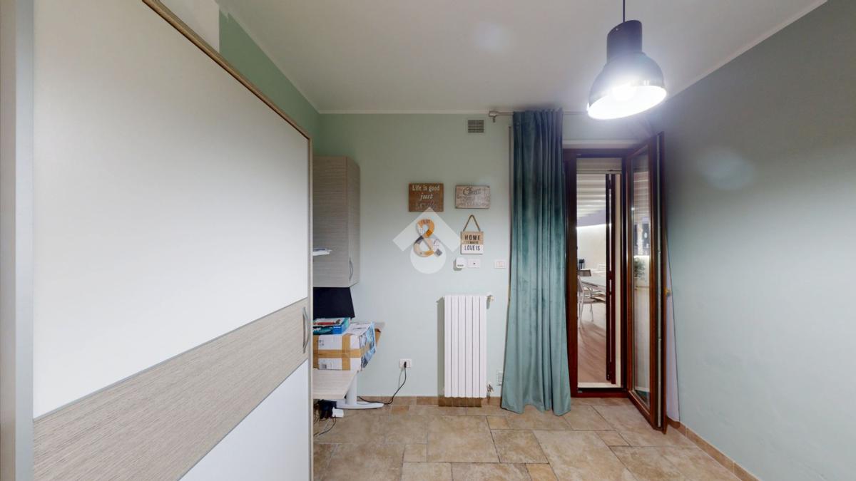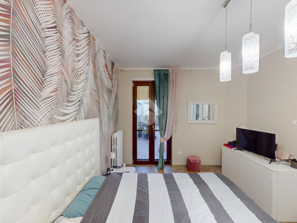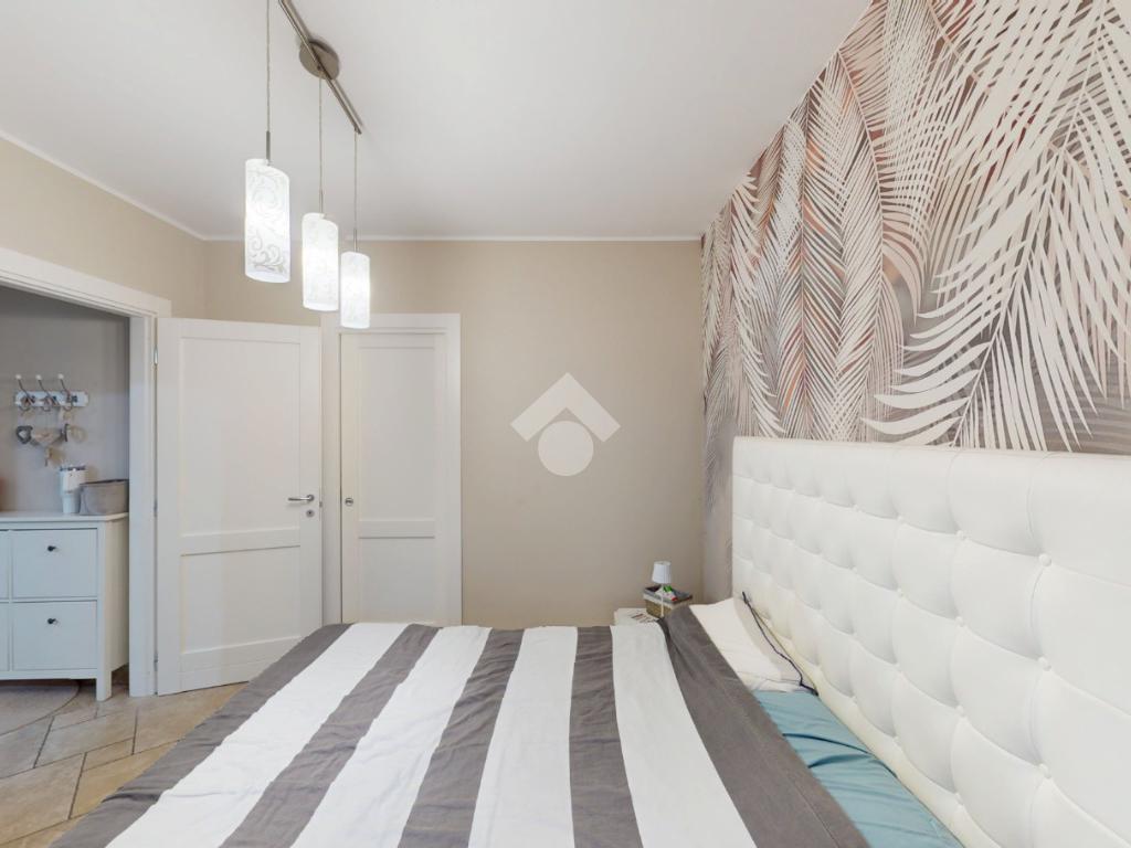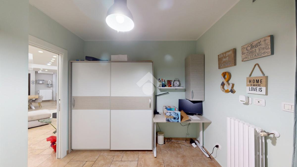 Un disimpegno dalla zona living conduce alla camera matrimoniale, di 13 mq, con cabina armadio ed accesso al terrazzo a livello.