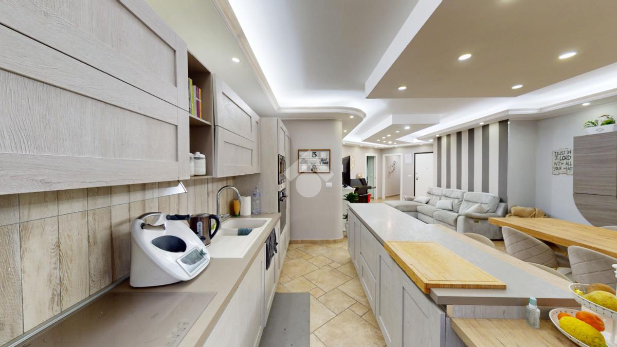 Nel dettaglio, si tratta di un appartamento al primo piano in ottime condizioni dalle dimensioni interne totali di 112 mq: l'accesso in casa si ha in una zona living di 45 mq, la quale comprende un soggiorno in open-space con la zona cottura oltre a disporre di accesso al balcone.