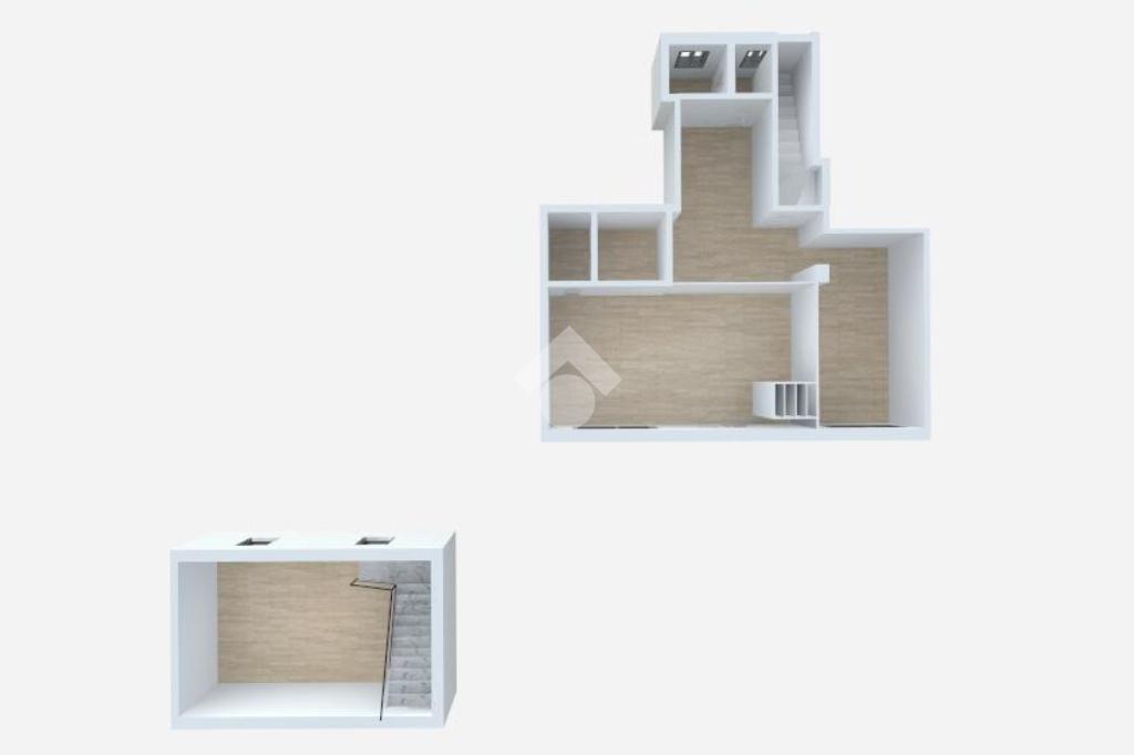 Dal primo ambiente al quale si ha accesso, le quali dimensioni sono di 42 mq, si ha accesso ad un bagno con antibagno, oltre che al soppalco: qui sono presenti due ulteriori ambienti utili.