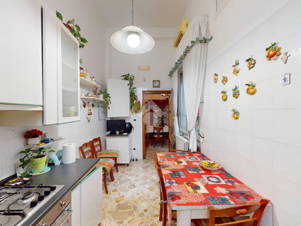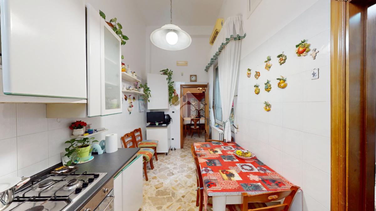L'accesso in casa è dato in un disimpegno che conduce in ogni ambiente dell'appartamento: per ordine, un soggiorno dalle dimensioni di 15 mq il quale dispone di accesso alla cucina, abitabile e con angolo cottura.