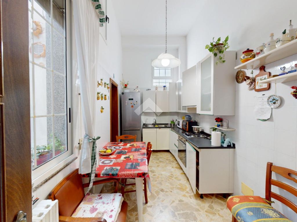 Dalla cucina in questione si ha accesso al bagno, con box doccia.