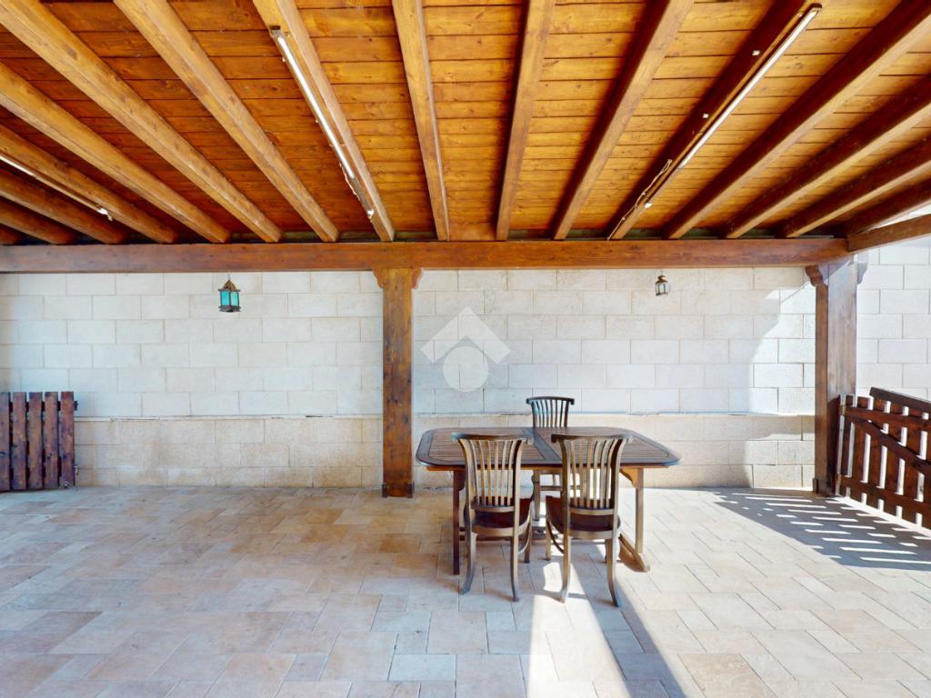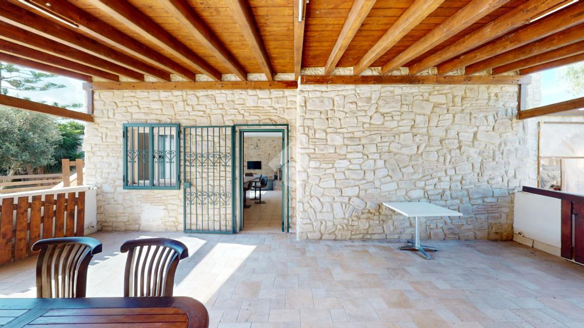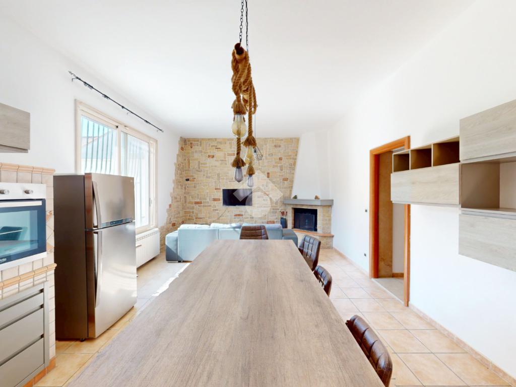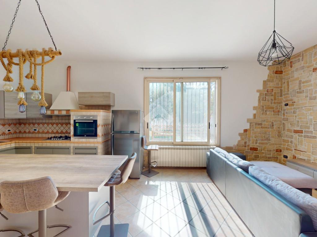 Un ampio giardino, dalle dimensioni totali di 300 mq circa, dà l'accesso all'abitazione: per ordine, una veranda ed a seguire un ampio e luminso soggiorno pranzo con angolo cottura a vista.