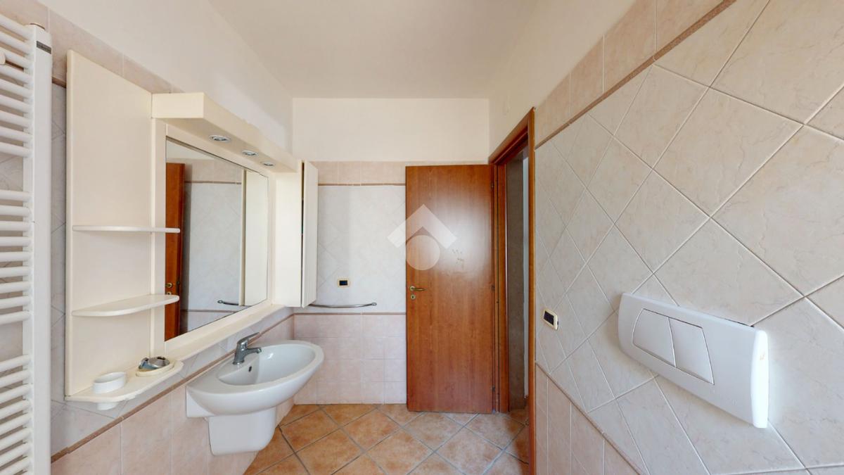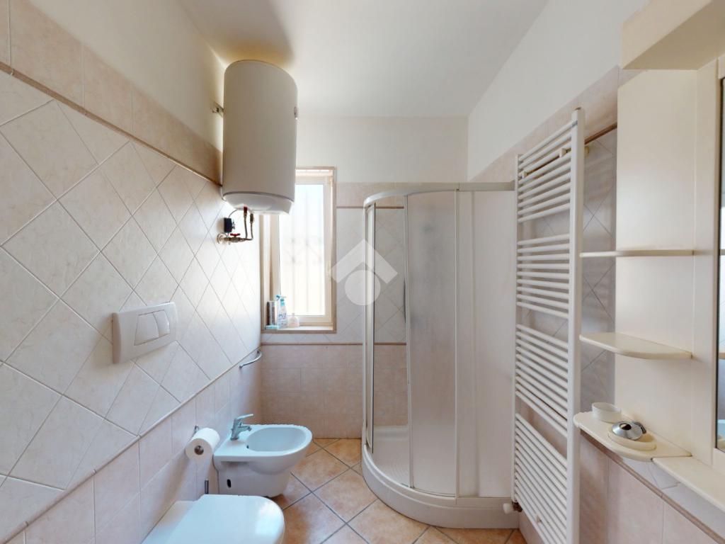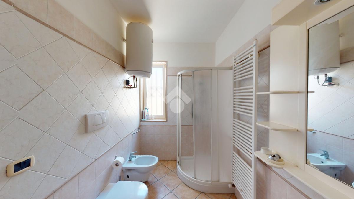 Tre camere da letto, un ripostiglio ed un bagno con box doccia completano la soluzione.